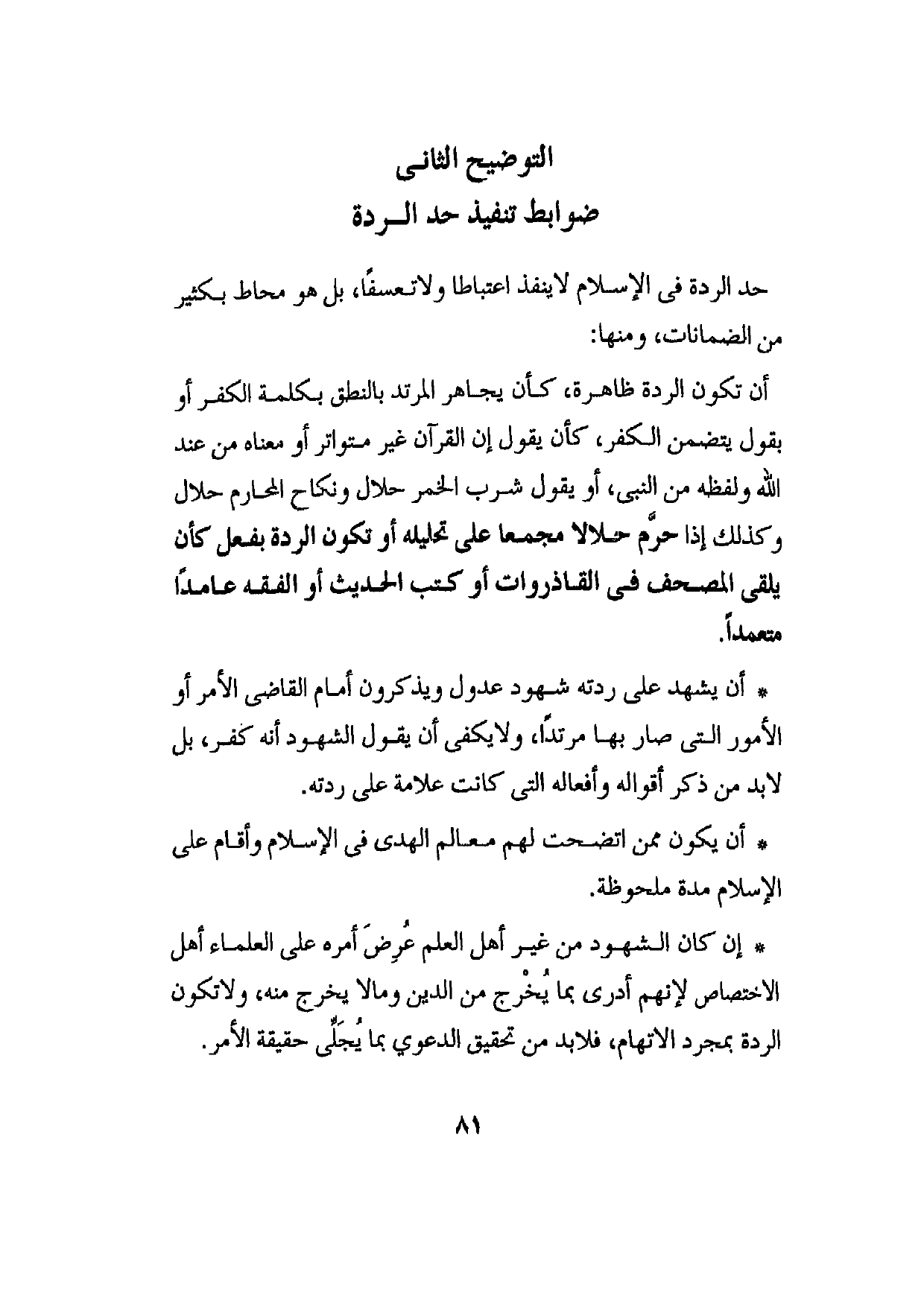 التوضيح الثاني ضوابط تنفيذ حد الردة