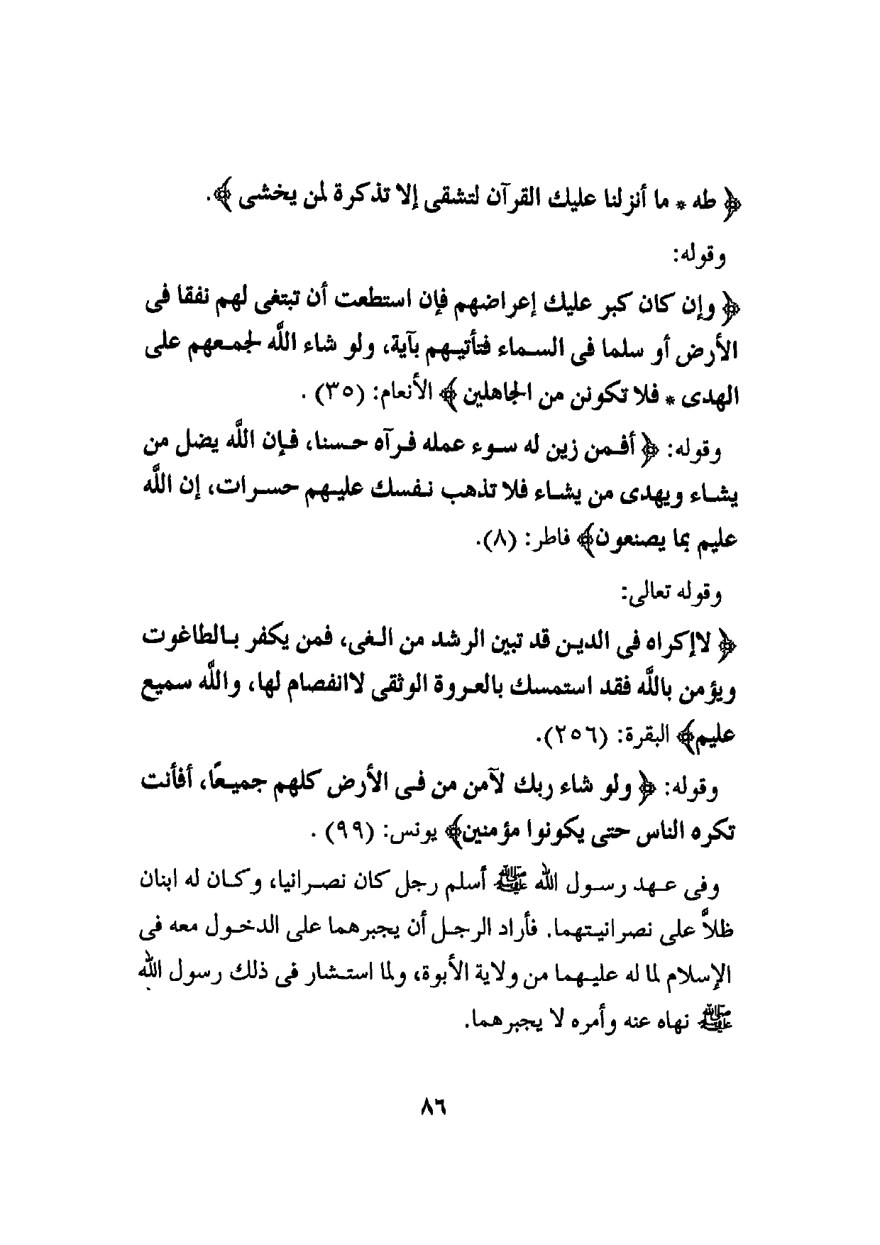 {لَا إِكْرَاهَ فِي الدِّينِ قَدْ تَبَيَّنَ الرُّشْدُ مِنَ الْغَيِّ فَمَنْ يَكْفُرْ بِالطَّاغُوتِ وَيُؤْمِنْ بِاللَّهِ فَقَدِ اسْتَمْسَكَ بِالْعُرْوَةِ الْوُثْقَى لَا انْفِصَامَ لَهَا وَاللَّهُ سَمِيعٌ عَلِيمٌ} البقرة: (256) .