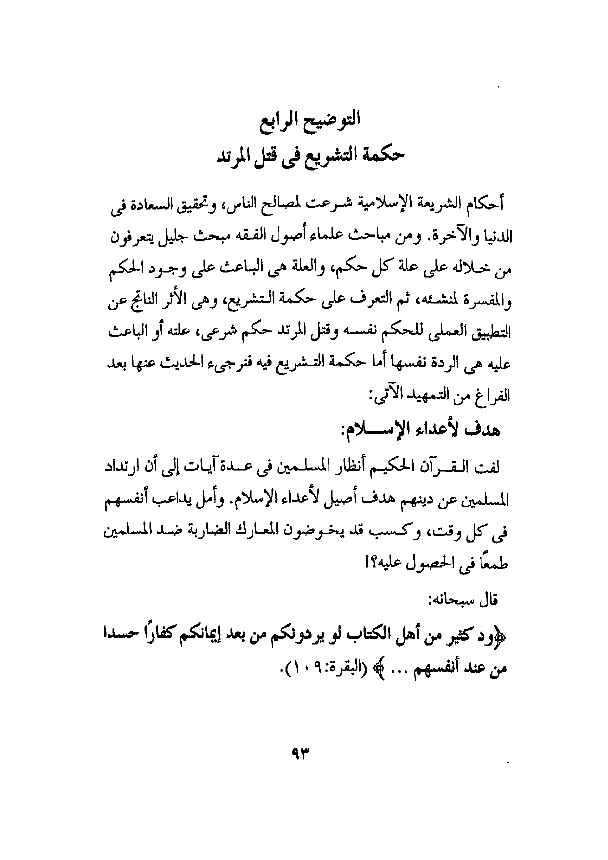 التوضيح الرابع حكمة التشريع في قتل المرتد