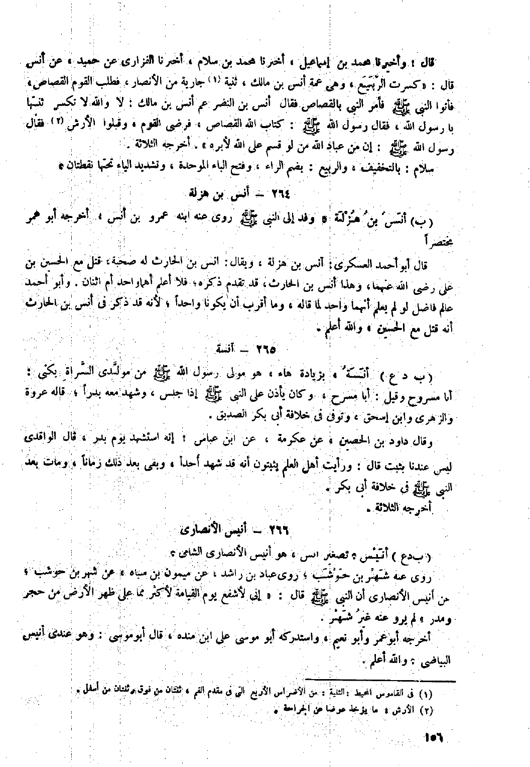 قَالَ: وَأَخْبَرَنَا مُحَمَّدُ بْنُ إِسْمَاعِيلَ، أَخْبَرَنَا مُحَمَّدُ بْنُ سَلامٍ، أَخْبَرَنَا الْفَزَارِيُّ عَنْ حُمَيْدٍ، عَنْ أَنَسٍ قَالَ: «كَسَرَتِ الرُّبَيِّعُ، وَهِيَ عَمَّةُ أَنَسِ بْنِ مَالِكٍ، ثَنِيَّةَ [١] جَارِيَةٍ مِنَ الأَنْصَارِ، فَطَلَبَ الْقَوْمُ الْقِصَاصَ، فَأَتَوْا النَّبِيَّ صَلَّى اللَّهُ عَلَيْهِ وَسَلَّمَ فَأَمَرَ النَّبِيُّ بِالْقِصَاصِ فَقَالَ أَنَسُ بْنُ النَّضْرِ عَمُّ أَنَسِ بْنِ مَالِكٍ: لا وَاللَّهِ لا تكسر ثنيتها يا رَسُول اللَّهِ، فقال رَسُول اللَّهِ صَلَّى اللَّهُ عَلَيْهِ وَسَلَّمَ: كِتَابُ اللَّهِ الْقِصَاصُ، فَرَضِيَ الْقَوْمُ، وقبلوا الأرش [٢] فقال رسول الله صلى الله عليه وسلم: إِنَّ مِنْ عِبَادِ اللَّهِ مَنْ لَوْ قَسَمَ عَلَى اللَّهِ لأَبَرَّهُ» . أَخْرَجَهُ الثَّلاثَةُ.