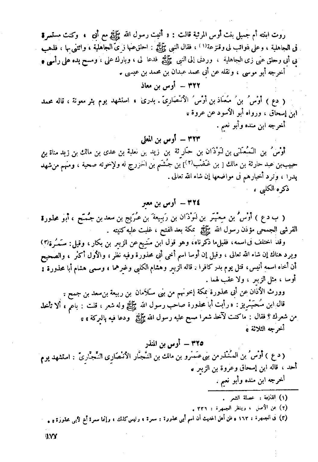 (د ع) أوس بْن معاذ بْن أوس الأنصاري. بدري، استشهد يَوْم بئر معونة، قاله محمد ابن إِسْحَاق، ورواه أَبُو الأسود عَنْ عروة.