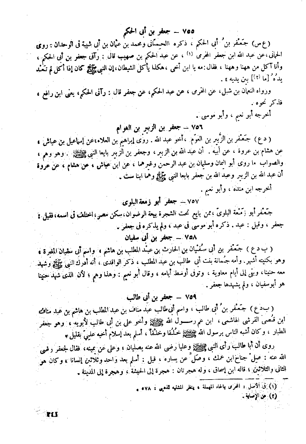 (ب د ع) جَعْفَر بْن أَبِي سفيان بْن الحارث بْن عبد المطلب بن هاشم، واسم أَبِي سفيان المغيرة، وهو بكنيته أشهر. وأمه جمانة بنت أَبِي طالب بْن عبد المطلب، ذكر الواقدي، أَنَّهُ أدرك النَّبِيّ صَلَّى اللَّهُ عَلَيْهِ وَسَلَّمَ وشهد معه حنينًا، وبقي إِلَى أيام معاوية، وتوفي أوسط أيامه، وقال أَبُو نعيم: وهذا وهم، لأن الذي شهد حنينًا هو أَبُو سفيان، ولم يشهدها جَعْفَر.