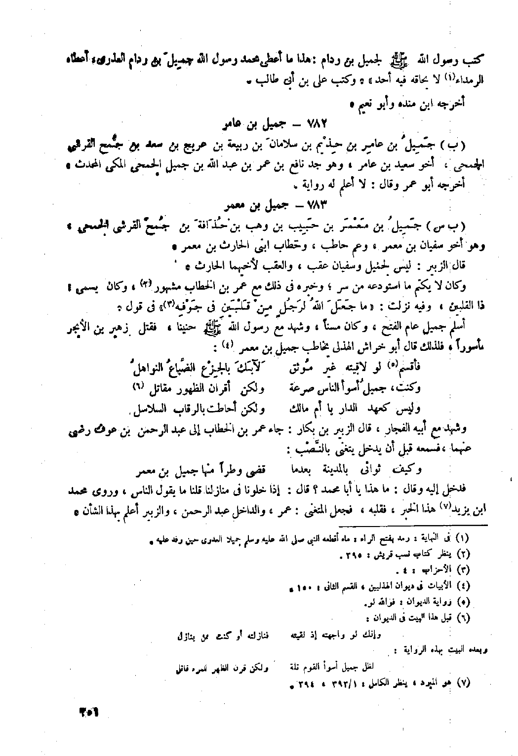كتب رَسُول اللَّهِ صَلَّى اللَّهُ عَلَيْهِ وَسَلَّمَ لجميل بْن ردام: هذا ما أعطى مُحَمَّد رَسُول اللَّهِ جميل بْن ردام العذري، أعطاه الرمداء [١] لا يحاقه فيه أحد» . وكتب علي بْن أَبِي طالب. أخرجه ابن منده وَأَبُو نعيم.