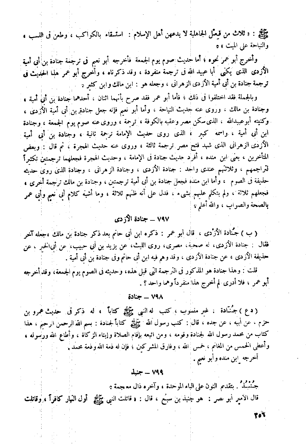 وأخرج أَبُو عمر نحوه، أما حديث صوم يَوْم الجمعة فأخرجه أَبُو نعيم في ترجمة جنادة بْن أَبِي أمية الأزدي الذي يكنى أبا عُبَيْد اللَّهِ في ترجمة منفردة، وقد ذكرناه، وأخرج أَبُو عمر هذا الحديث في ترجمة جنادة بْن أَبِي أمية الأزدي الزهراني، وجعله هو: ابن مالك وابن كثير.
