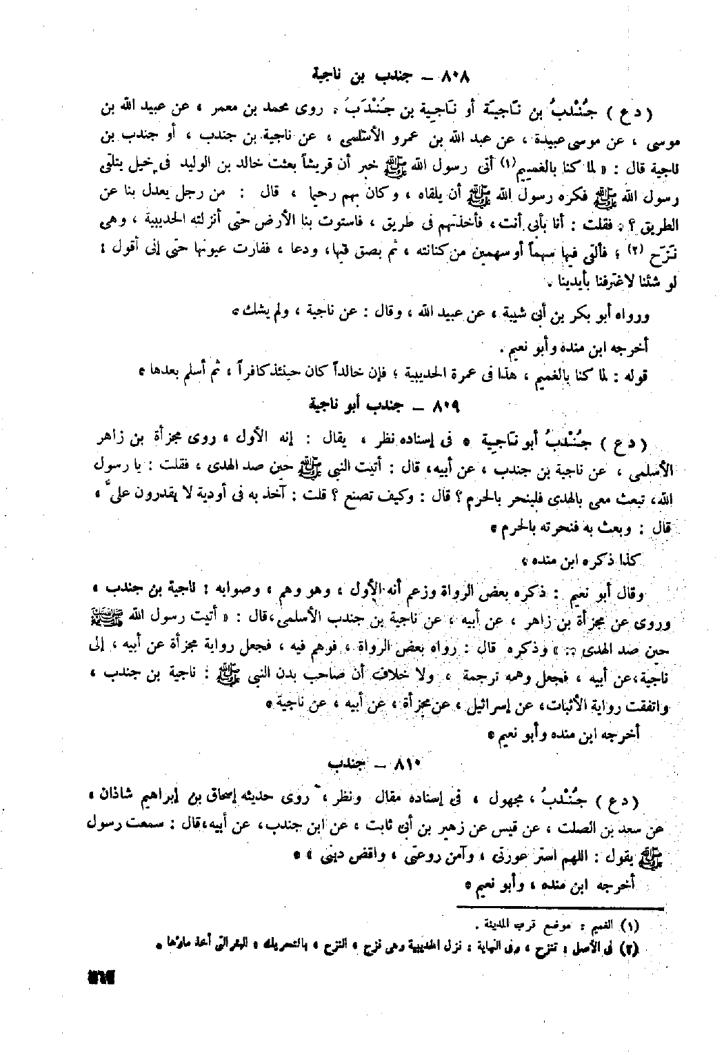 وَقَالَ أَبُو نُعَيْمٍ: ذكره بعض الرواة وزعم أَنَّهُ الأول، وهو وهم، وصوابه: ناجية بْن جندب، وروى عَنْ مجزأة بْن زاهر، عَنْ أبيه، عَنْ ناجية بْن جندب الأسلمي، قال: «أتيت رَسُول اللَّهِ صَلَّى اللَّهُ عَلَيْهِ وَسَلَّمَ حين صد الهدي..» وذكره قال: رواه بعض الرواة، فوهم فيه، فجعل رواية مجزأة عَنْ أبيه، إِلَى ناجية، عَنْ أبيه، فجعل وهمه ترجمة، ولا خلاف أن صاحب بدن النَّبِيّ صَلَّى اللَّهُ عَلَيْهِ وَسَلَّمَ: نَاجِيَةُ بْن جُنْدَبٍ، واتفقت رواية الأثبات، عَنْ إسرائيل، عَنْ مجزأة، عَنْ أبيه، عَنْ ناجية.