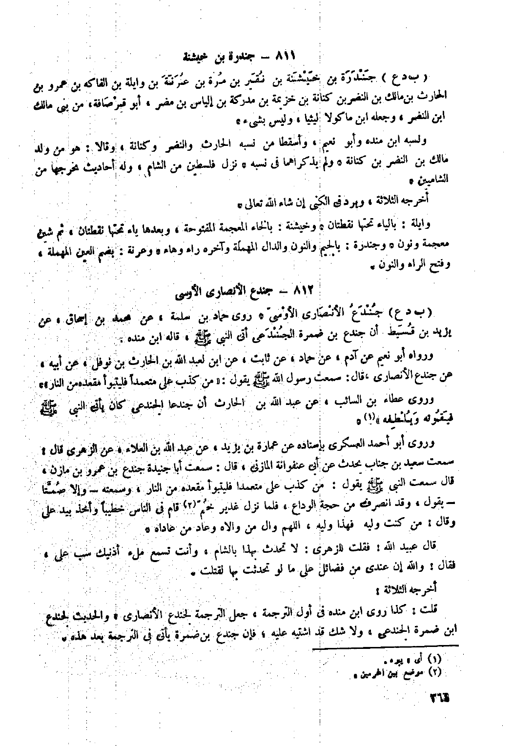 قلت: كذا روى ابن منده في أول الترجمة، جعل الترجمة لجندع الأنصاري، والحديث لجندع ابن ضمرة الجندعي، ولا شك قد اشتبه عليه، فإن جندع بْن ضمرة يأتي في الترجمة بعد هذه.