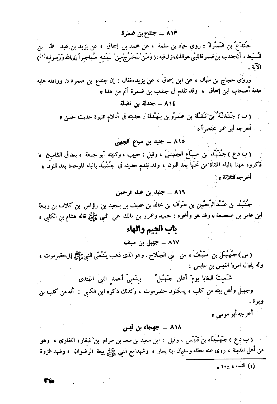 (ب) جندلة بْن نضلة بْن عمرو بْن بهدلة. حديثه في أعلام النبوة حديث حسن.
