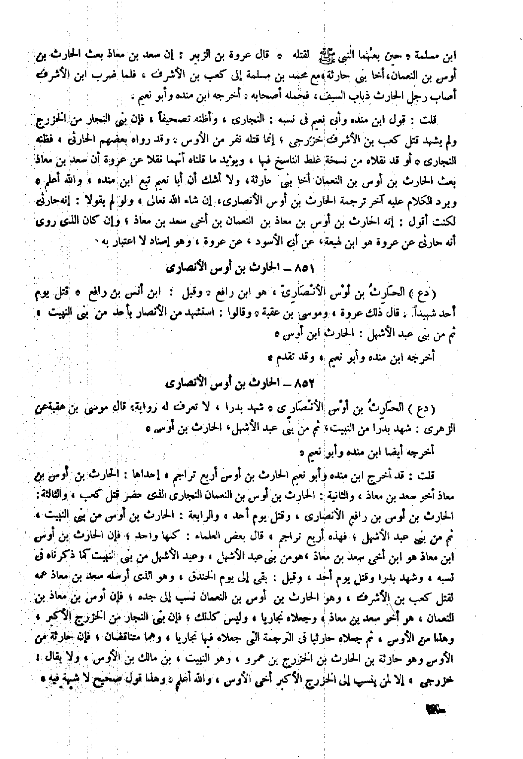 ٨٥٢- الحارث بن أوس الأنصاري