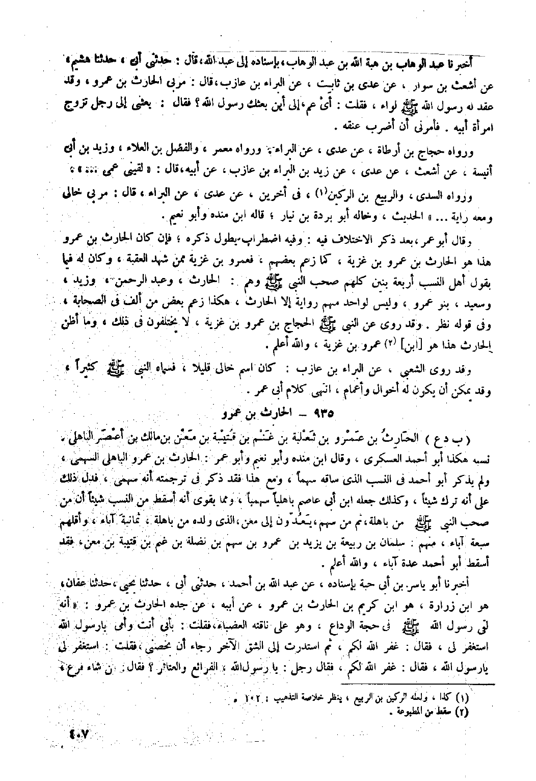 أخبرنا عبد الوهاب بن هبة الله بن عَبْدِ الْوَهَّابِ، بِإِسْنَادِهِ إِلَى عَبْدِ اللَّهِ، قَالَ: حَدَّثَنِي أَبِي، حَدَّثَنَا هُشَيْمٌ، عَنْ أَشْعَثَ بْنِ سَوَّارٍ، عَنْ عَدِيِّ بْنِ ثَابِتٍ، عَنْ الْبَرَاءِ بْنِ عَازِبٍ، قَالَ: مَرَّ بِي الْحَارِثُ بْنُ عَمْرٍو، وَقَدْ عَقَدَ لَهُ رَسُولُ اللَّهِ صَلَّى اللَّهُ عَلَيْهِ وَسَلَّمَ لِوَاءً، فَقُلْتُ: أَيْ عَمٍّ، إِلَى أَيْنَ بَعَثَكَ رَسُولُ اللَّهِ؟ فَقَالَ: بَعَثَنِي إِلَى رَجُلٍ تَزَوَّجَ امْرَأَةَ أَبِيهِ. فَأَمَرَنِي أَنْ أَضْرِبَ عُنُقَهُ.
