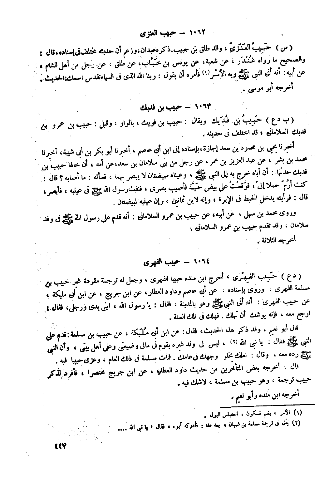 ١٠٦٣- حبيب بن فديك