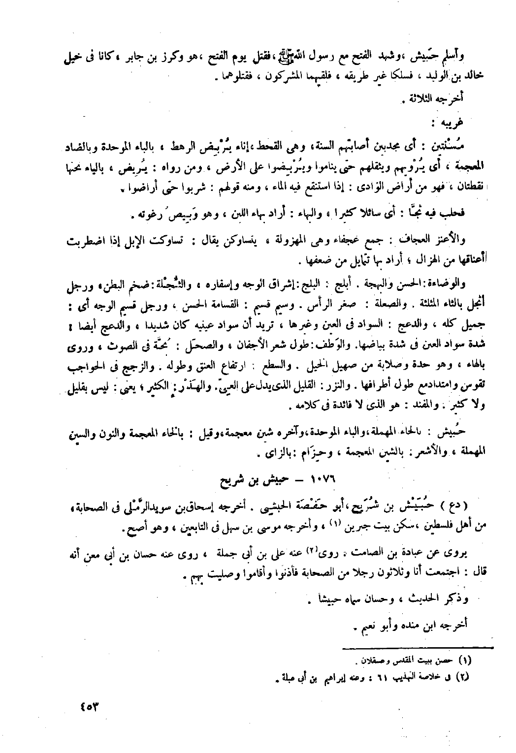 (د ع) حبيش بن شريح، أبو حفصة الحبشي. أخرجه إِسْحَاق بْن سويد الرملي في الصحابة، من أهل فلسطين، سكن بيت جبرين [١] ، وأخرجه موسى بْن سهل في التابعين، وهو أصح.