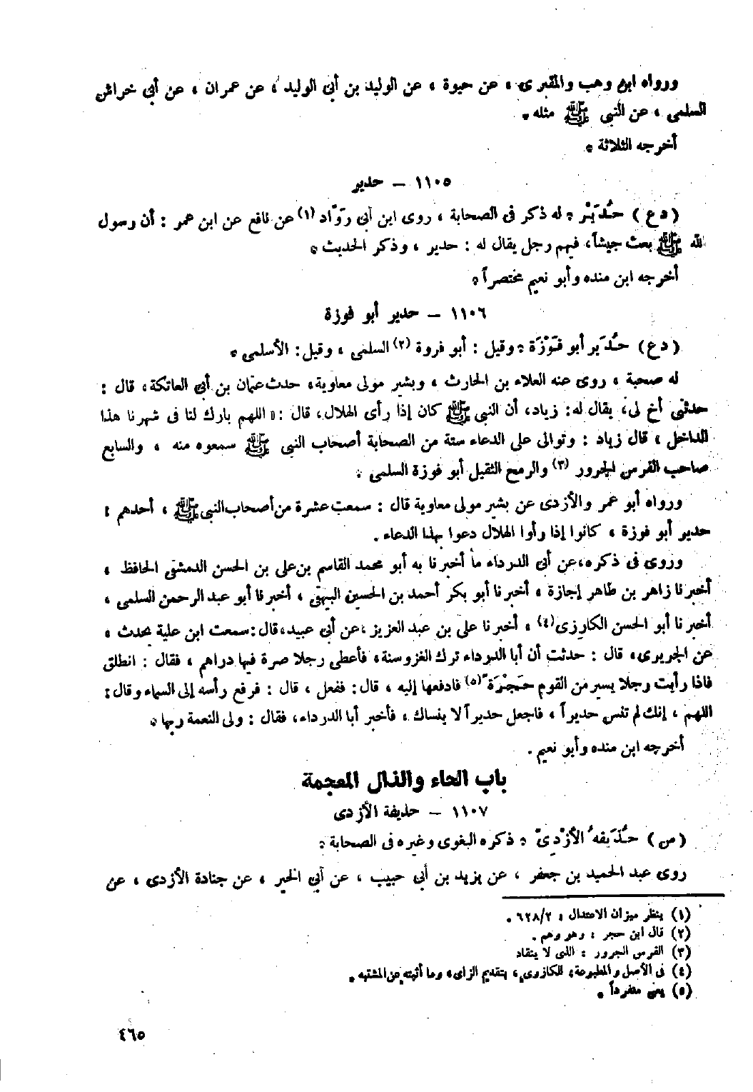 (د ع) حدير. له ذكر في الصحابة، روى ابن أَبِي رواد [١] عَنْ نَافِعٍ عَنِ ابْنِ عُمَرَ: أَنَّ رَسُول اللَّهِ صَلَّى اللَّهُ عَلَيْهِ وَسَلَّمَ بعث جيشًا، فيهم رجل يقال له: حدير، وذكر الحديث.