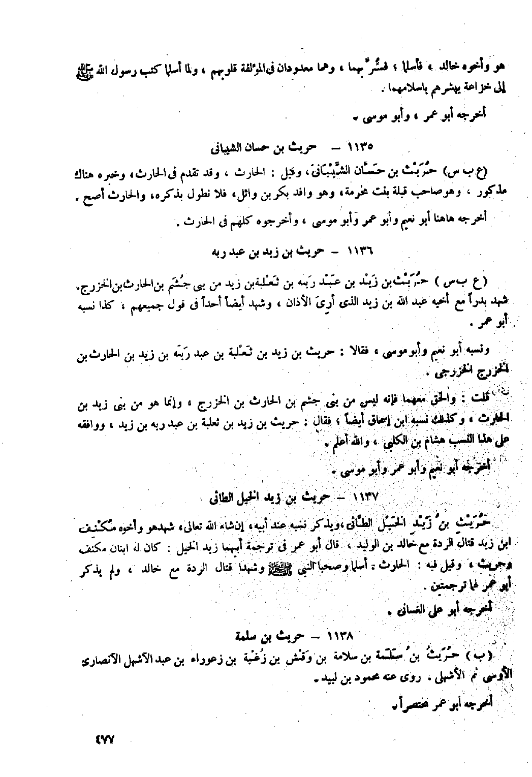 (ب) حريث بْن سلمة بْن سلامة بْن وقش بْن زغبة بْن زعوراء بْن عبد الأشهل الأنصاري الأوسي ثُمَّ الأشهلي. روى عنه محمود بْن لبيد.