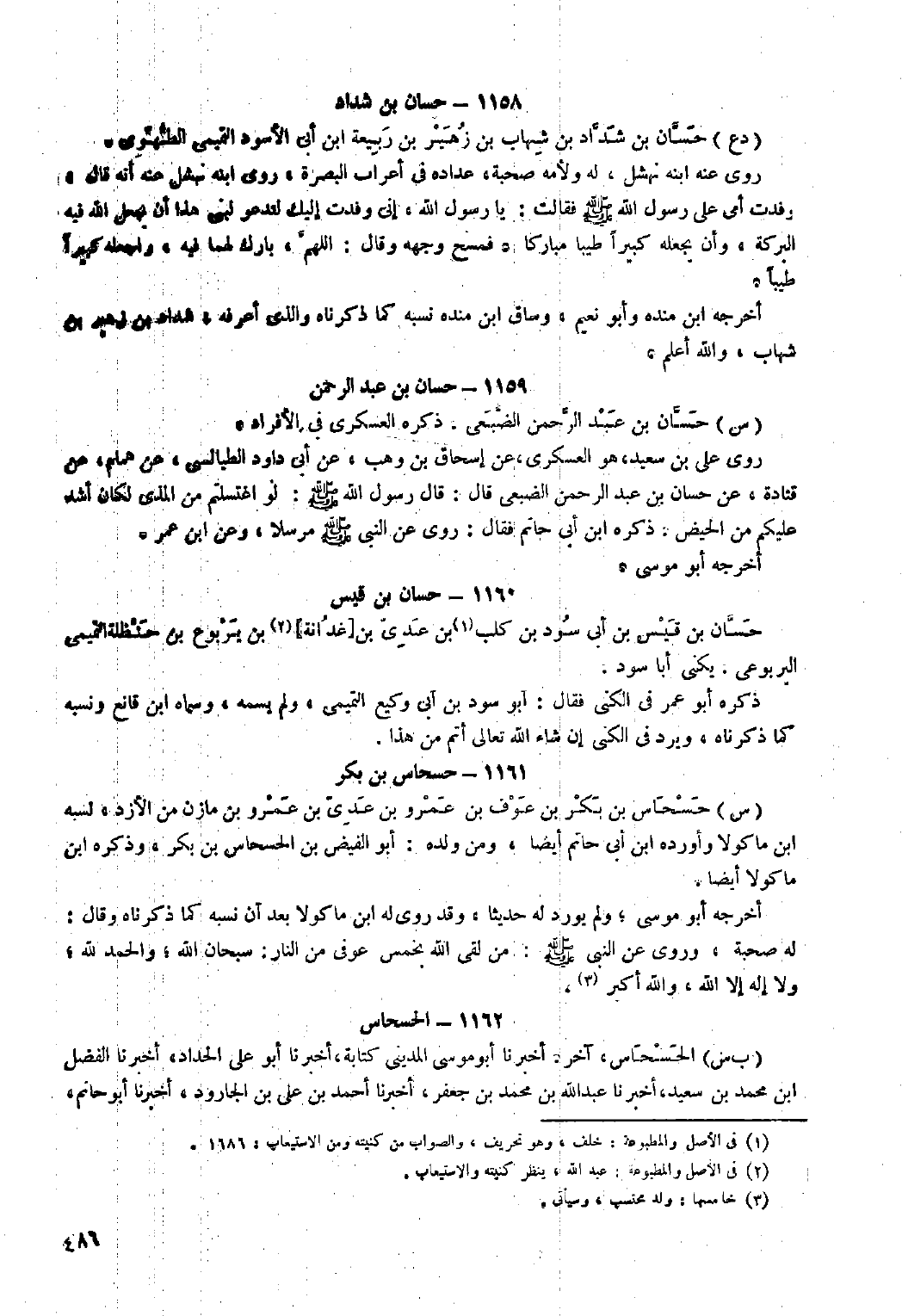 (ب س) الحسحاس، آخر. أَخْبَرَنَا أَبُو مُوسَى الْمَدِينِيُّ كِتَابَةً، أَخْبَرَنَا أَبُو عَلِيٍّ الْحَدَّادُ، أَخْبَرَنَا الفضل ابن مُحَمَّدِ بْنِ سَعِيدٍ، أَخْبَرَنَا عَبْدُ اللَّهِ بْنُ مُحَمَّدِ بْنِ جَعْفَرٍ، أَخْبَرَنَا أَحْمَدُ بْنُ عَلِيٍّ بن الجارود، أخبرنا أبو حاتم،