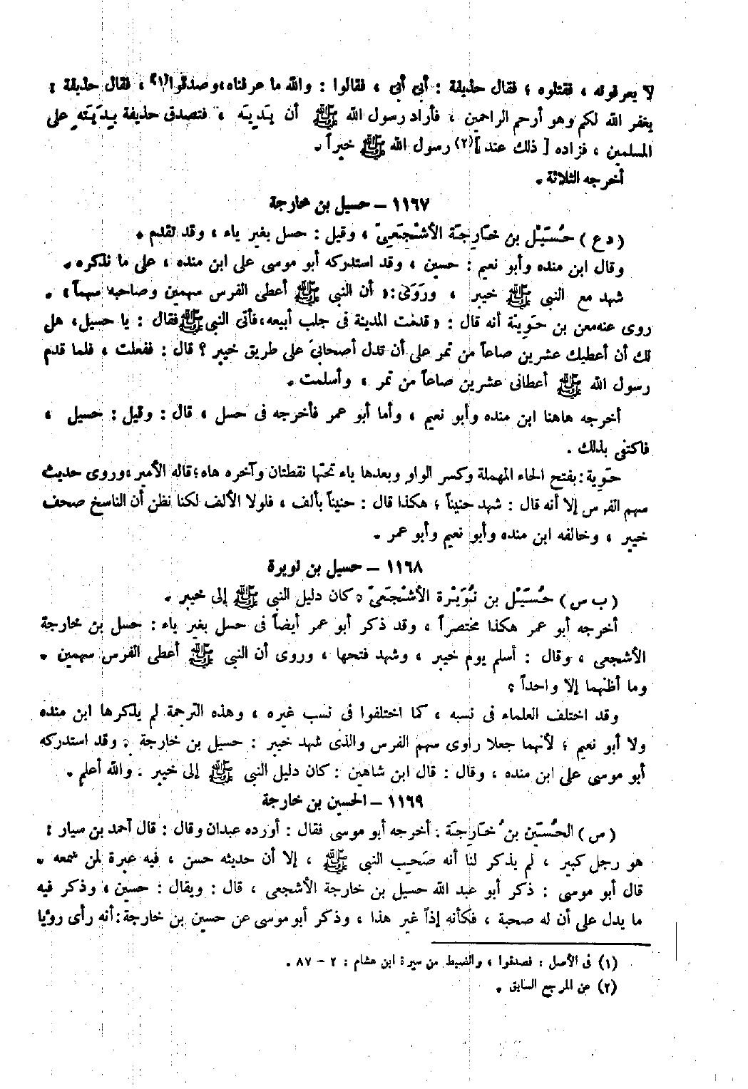 وقد اختلف العلماء في نسبه، كما اختلفوا في نسب غيره، وهذه الترجمة لم يذكرها ابن منده ولا أَبُو نعيم، لأنهما جعلا راوي سهم الفرس والذي شهد خيبر: حسيل بْن خارجة. وقد استدركه أَبُو موسى عَلَى ابن منده، وقال: قال ابن شاهين: كَانَ دليل النَّبِيّ صَلَّى اللَّهُ عَلَيْهِ وَسَلَّمَ إِلَى خيبر. والله أعلم.