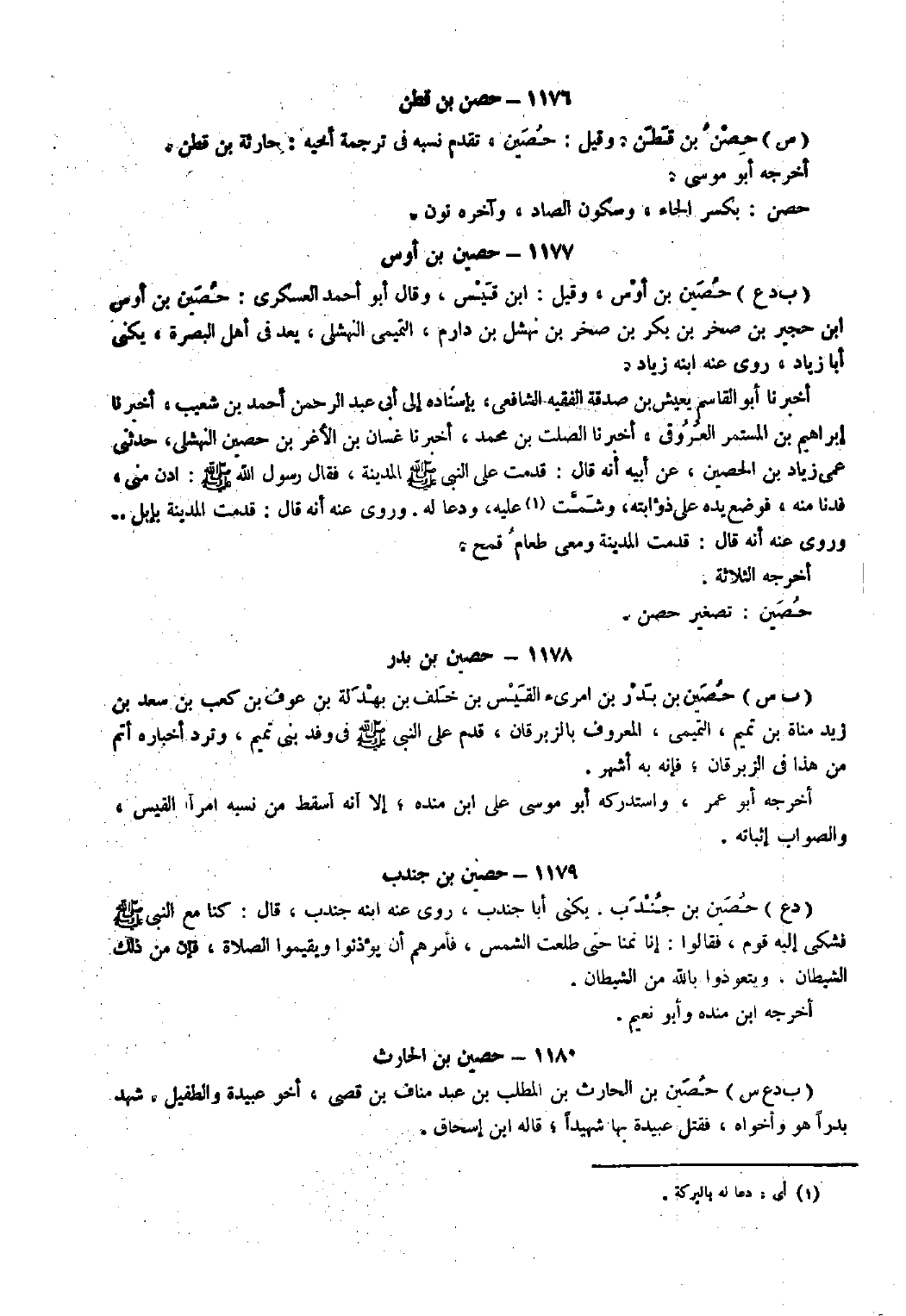 (ب س) حصين بْن بدر بْن امرئ القيس بن خلف بْن بهدلة بْن عوف بْن كعب بْن سعد بْن زيد مناة بْن تميم، التميمي، المعروف بالزبرقان، قدم عَلَى النَّبِيّ صَلَّى اللَّهُ عَلَيْهِ وَسَلَّمَ في وفد بني تميم، وترد أخباره أتم من هذا في الزبرقان، فإنه به أشهر.