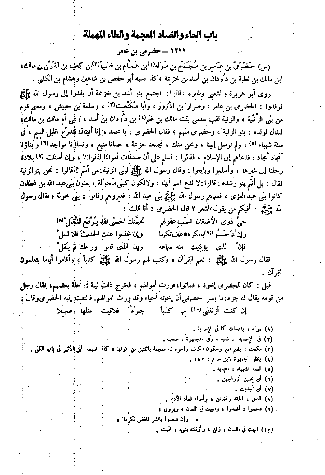 (س) حضرمي بْن عامر بْن مجمع بْن موله [١] بن همام بْن ضب [٢] بْن كعب بْن القين بْن مالك، ابن مالك بْن ثعلبة بْن دودان بْن أسد بْن خزيمة، كذا نسبه أَبُو حفص بْن شاهين وهشام بْن الكلبي.
