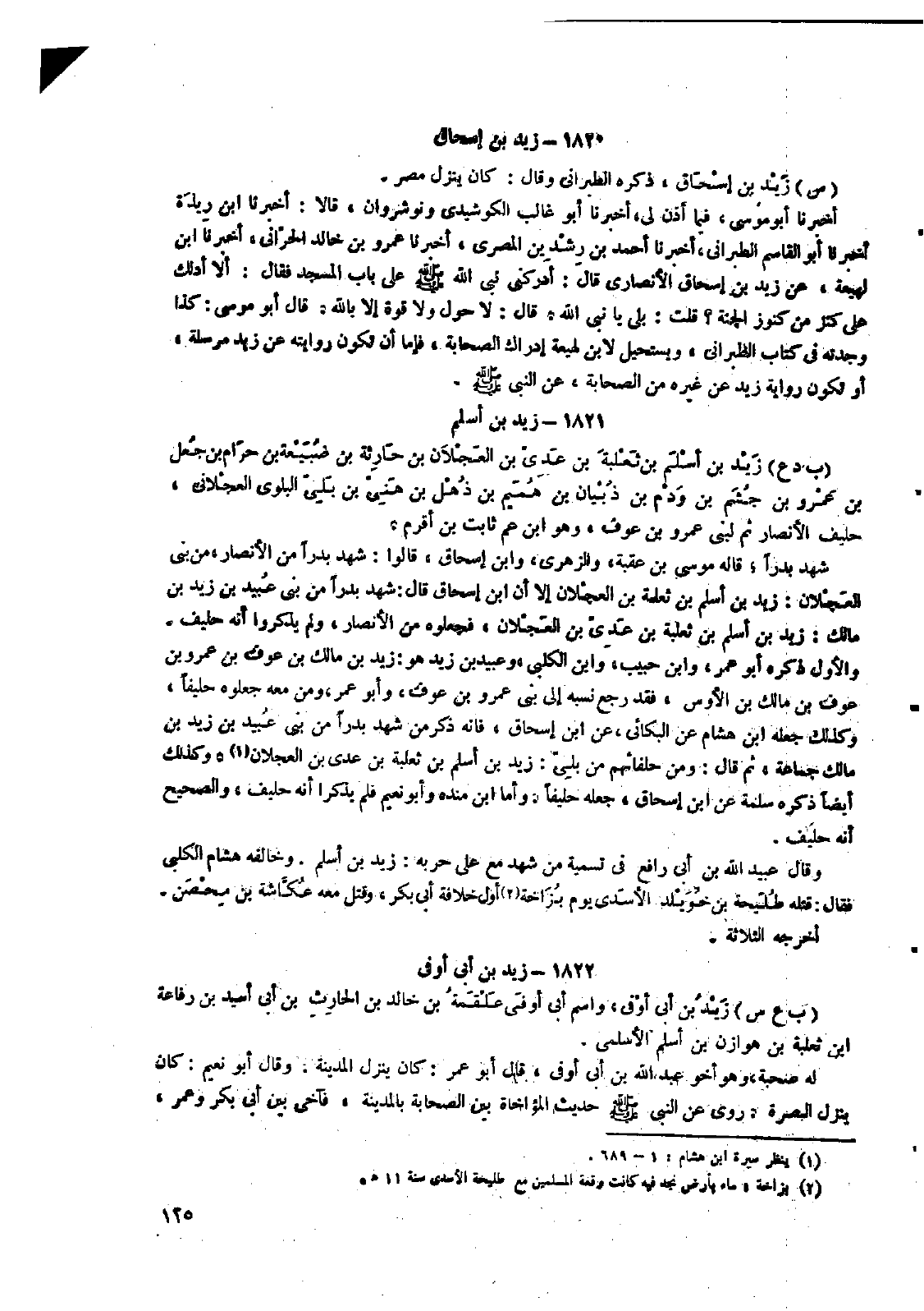 والأول ذكره أَبُو عمر، وابن حبيب، وابن الكلبي، وعبيد بْن زيد هو: زيد بْن مالك بْن عوف بْن عمرو بْن عوف بْن مالك بْن الأوس، فقد رجع نسبه إِلَى بني عمرو بْن عوف، وَأَبُو عمر، ومن معه جعلوه حليفًا، وكذلك جعله ابْنُ هشام عَنِ البكائي، عَنِ ابْنِ إِسْحَاق، فإنه ذكر مَنْ شَهِدَ بَدْرًا مِنْ بَنِي عُبَيْدِ بْن زيد بْن مالك جماعة، ثم قال: ومن حلفائهم من بلي: زيد بْن أسلم بْن ثعلبة بْن عدي بْن العجلان [١] ، وكذلك أيضًا ذكره سلمة عَنِ ابن إِسْحَاق، جعله حليفًا. وأمَّا ابْنُ منده وَأَبُو نعيم فلم يذكرا أَنَّهُ حليف، والصحيح أَنَّهُ حليف.