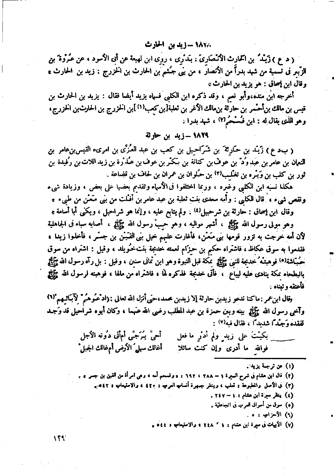 وقال ابن عمر: ما كنا ندعو زيد بْن حارثة إلا زيد بْن مُحَمَّد، حتى أنزل اللَّه تعالى: ادْعُوهُمْ لِآبائِهِمْ [٦] ٣٣: ٥ وآخى رَسُول اللَّهِ صَلَّى اللَّهُ عَلَيْهِ وَسَلَّمَ بينه وبين حمزة بْن عبد المطلب رضي الله عنهما، وكان أبوه شراحيل قد وجد لفقده وجدًا شديدًا، فقال فيه [٧] :