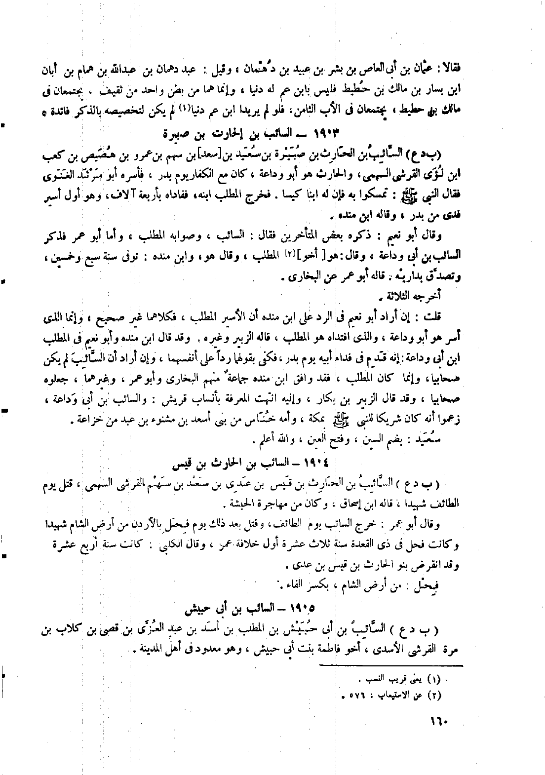 ١٩٠٣- السائب بن الحارث بن صبيرة