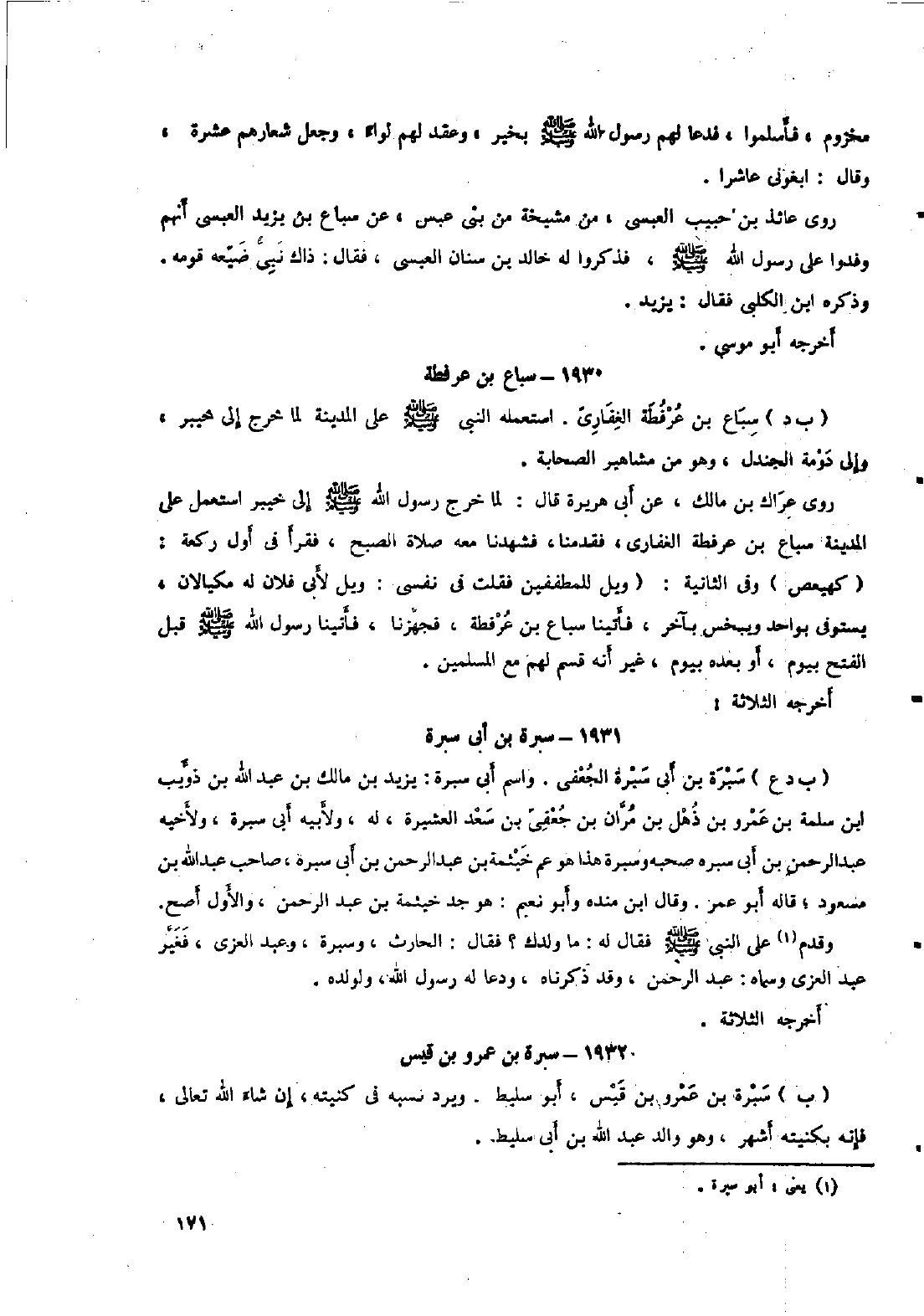 (ب د) سباع بْن عرفطة الغفاري. استعمله النَّبِيّ صَلَّى اللَّهُ عَلَيْهِ وَسَلَّمَ عَلَى المدينة لما خرج إِلَى خيبر، وَإِلى دومة الجندل، وهو من مشاهير الصحابة.
