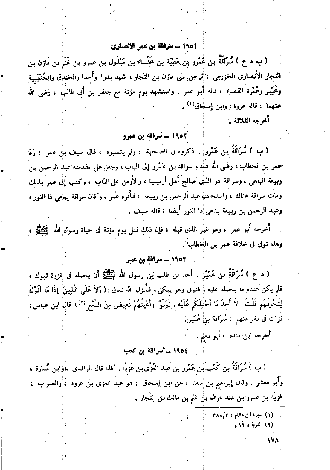 (ب) سراقة بْن عمرو. ذكروه في الصحابة، ولم ينسبوه، قال سيف بْن عمر: رد عمر بْن الخطاب، رضي اللَّه عنه، سراقة بْن عمرو إِلَى الباب، وجعل عَلَى مقدمته عبد الرحمن بْن ربيعة الباهلي، وسراقة هو الذي صالح أهل أرمينية، والأرمن عَلَى الباب، وكتب إِلَى عمر بذلك ومات سراقة هناك، واستخلف عبد الرحمن بْن ربيعة، فأقره عمر، وكان سراقة يدعى ذا النور، وعبد الرحمن بْن ربيعة يدعى ذا النور أيضًا، قاله سيف.
