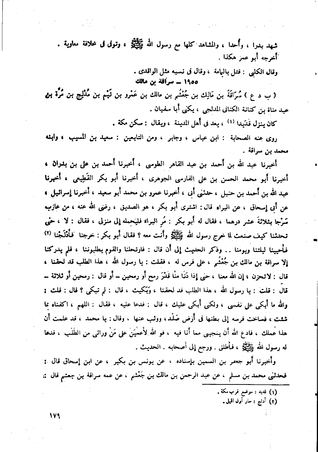 (ب د ع) سراقة بْن مالك بْن جعشم بن مالك بْن عمرو بْن تيم بْن مدلج بْن مرة بْن عبد مناة بْن كنانة الكناني المدلجي، يكنى أبا سفيان.