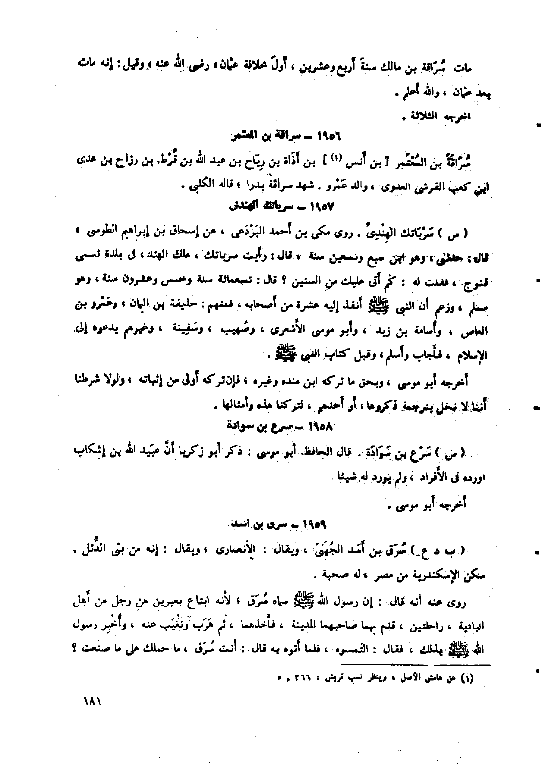 (س) سرباتك الهندي. روى مكي بْن أحمد البردعي، عَنْ إِسْحَاق بْن إِبْرَاهِيم الطوسي، قال: حدثني، وهو ابن سبع وتسعين سنة، قال: رأيت سرباتك، ملك الهند، في بلدة تسمى قنوج، فقلت له: كم أتى عليك من السنين؟ قال: تسعمائة سنة وخمس وعشرون سنة، وهو مسلم، وزعم أن النَّبِيّ صَلَّى اللَّهُ عَلَيْهِ وَسَلَّمَ أنفذ إليه عشرة من أصحابه، فمنهم: حذيفة بْن اليمان، وعمرو بْن العاص، وأسامة بْن زيد، وَأَبُو موسى الأشعري، وصهيب، وسفينة، وغيرهم يدعوه إِلَى الإسلام، فأجاب وأسلم، وقبل كتاب النَّبِيّ صَلَّى اللَّهُ عَلَيْهِ وَسَلَّمَ.