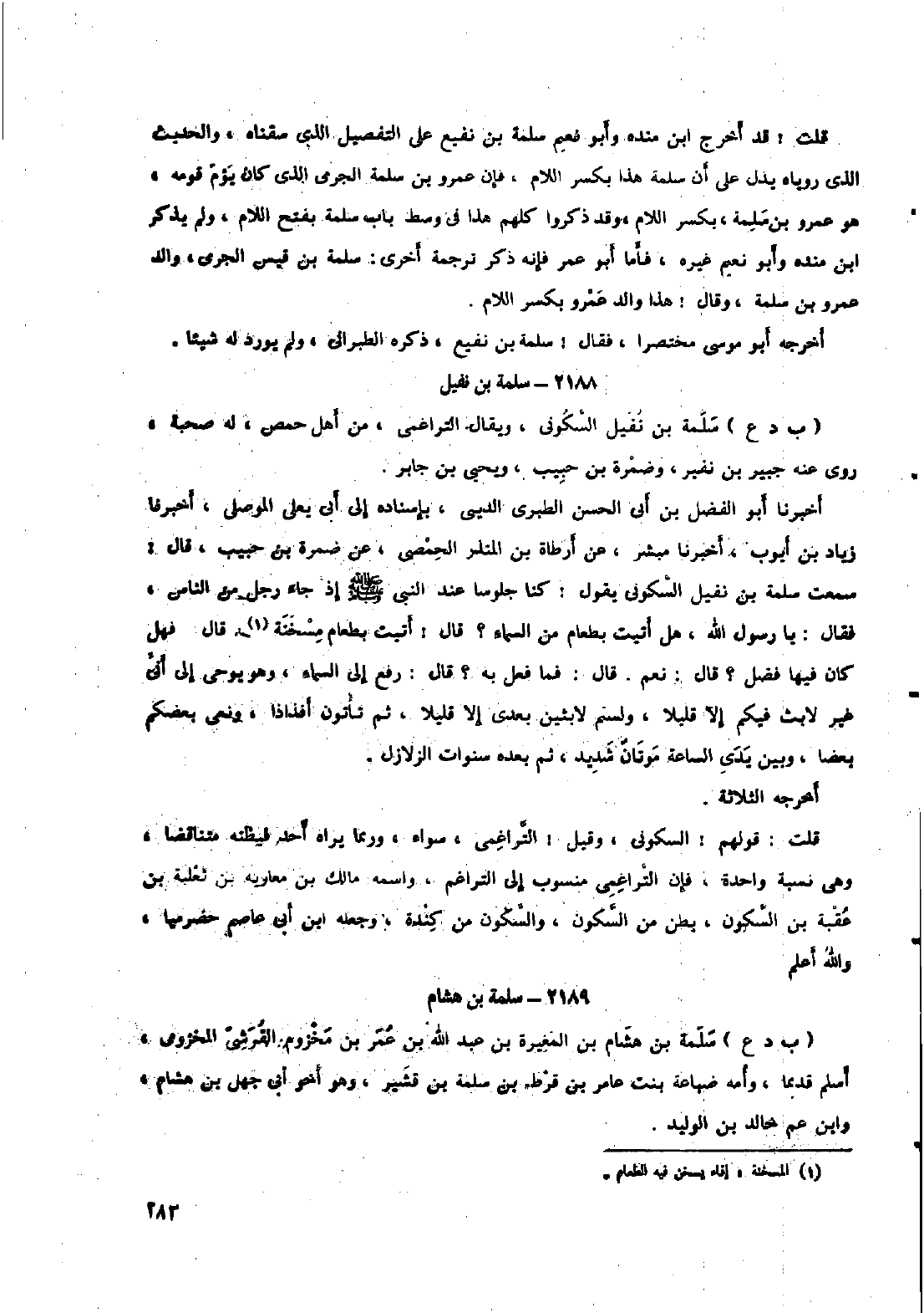 قلت: قد أخرج ابن منده وَأَبُو نعيم سلمة بْن نفيع عَلَى التفصيل الذي سقناه، والحديث الذي روياه يدل عَلَى أن سلمة هذا بكسر اللام، فإن عمرو بْن سلمة الجرمي الذي كان يؤم قومه، هو عمرو بْن سلمة، بكسر اللام، وقد ذكروا كلهم هذا في وسط باب سلمة بفتح اللام، ولم يذكر ابن منده وَأَبُو نعيم غيره، فأما أَبُو عمر فإنه ذكر ترجمة أخرى: سلمة بْن قيس الجرمي، والد عمرو بْن سلمة، وقال: هذا والد عمرو بكسر اللام.
