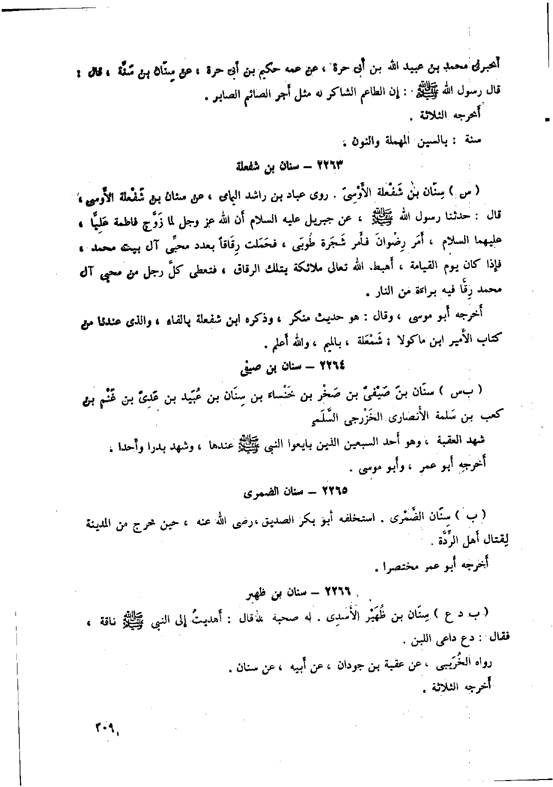 ٢٢٦٣- سنان بن شفعلة