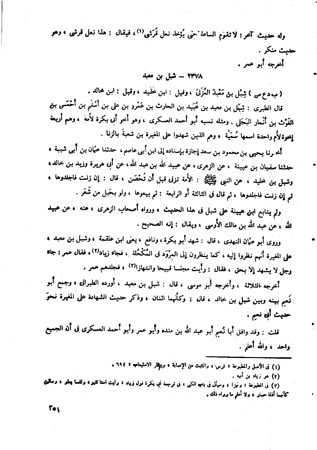 وَلَمْ يُتَابِعِ ابْنُ عُيَيْنَةَ عَلَى شِبْلِ فِي هَذَا الْحَدِيثِ، وَرَوَاهُ أَصْحَابُ الزُّهْرِيِّ، عَنْهُ، عَنْ عُبَيْدِ اللَّهِ، عَنْ عَبْدِ اللَّهِ بْنِ مَالِكٍ الأَوْسِيِّ، ويُقَالُ: إِنَّهُ الصَّحِيحُ. وروى أبو عثمان النهدي، قال: شهد أَبُو بكرة، ونافع، يعني ابن علقمة، وشبل بْن معبد، عَلَى المغيرة أنهم نظروا إليه، كما ينظرون إِلَى المرود في المكحلة، فجاء زياد [٢] ، فقال عمر: جاء رجل لا يشهد إلا بحق، فقال: رأيت مجلسًا قبيحًا وانتهازًا [٣] ، فجلدهم عمر.