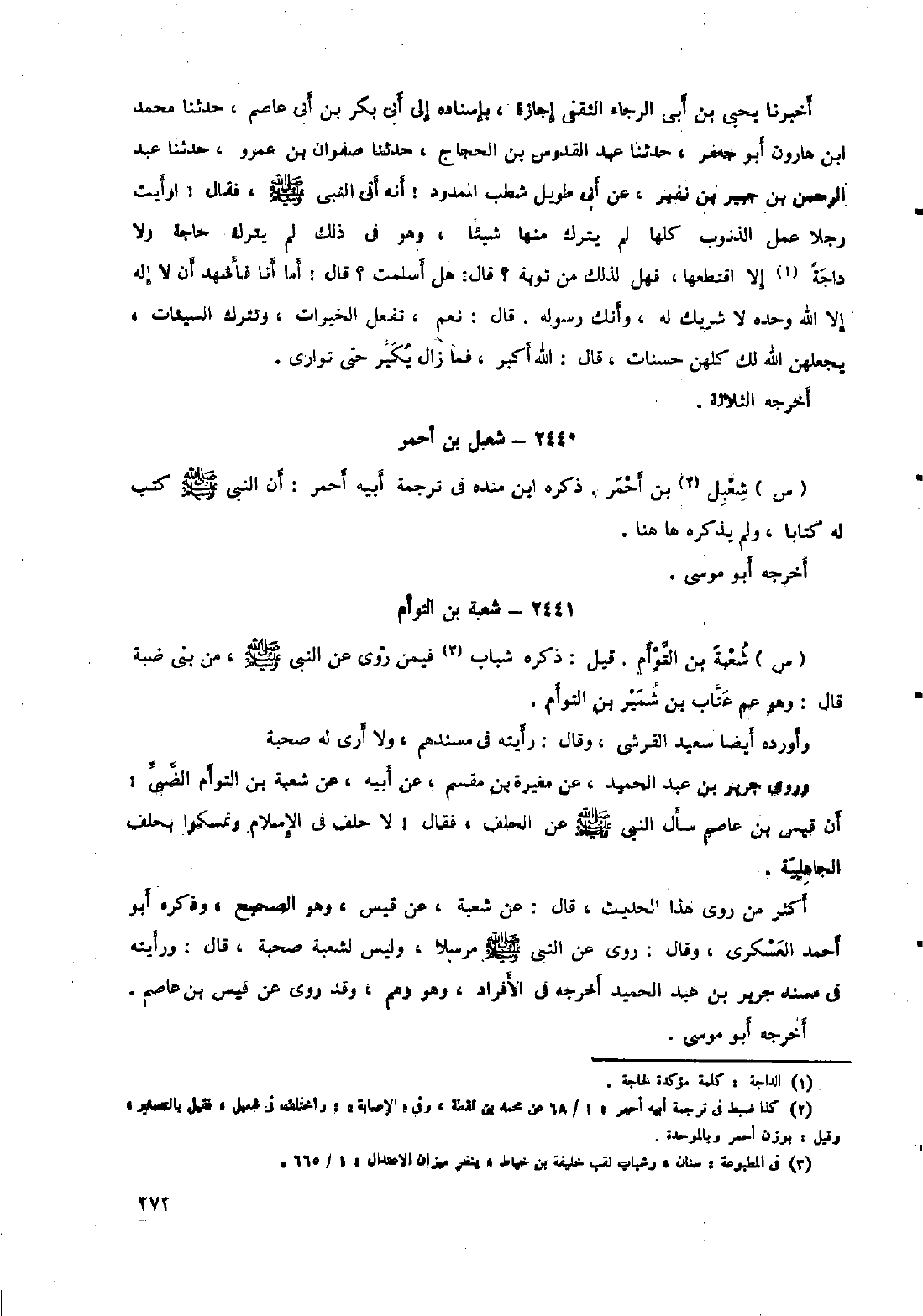 [٢] كذا ضبط في ترجمة أبيه أحمر: ١/ ٦٨ عن محمد بن نقطة، وفي «الإصابة» : واختلف في شعبل، فقيل بالتصغير، وقيل: بوزن أحمر والموحدة.
