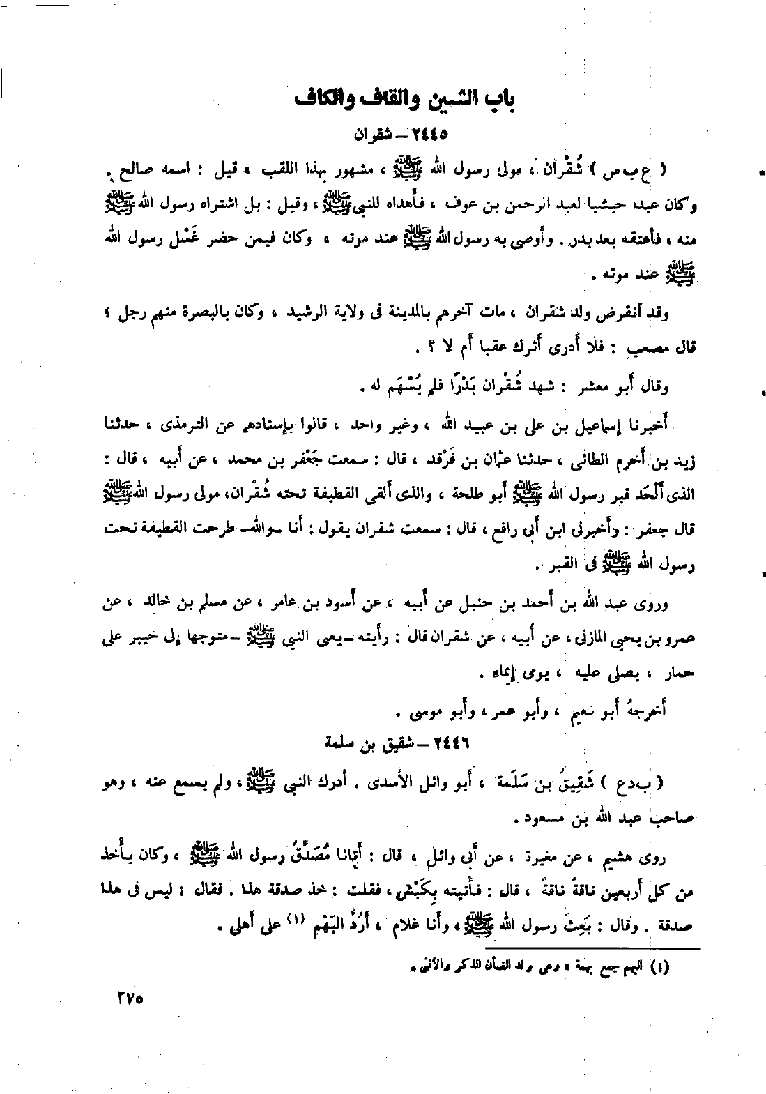(ع ب س) شقران، مولى رَسُول اللَّهِ صَلَّى اللَّهُ عَلَيْهِ وَسَلَّمَ، مشهور بهذا اللقب، قيل: اسمه صالح.