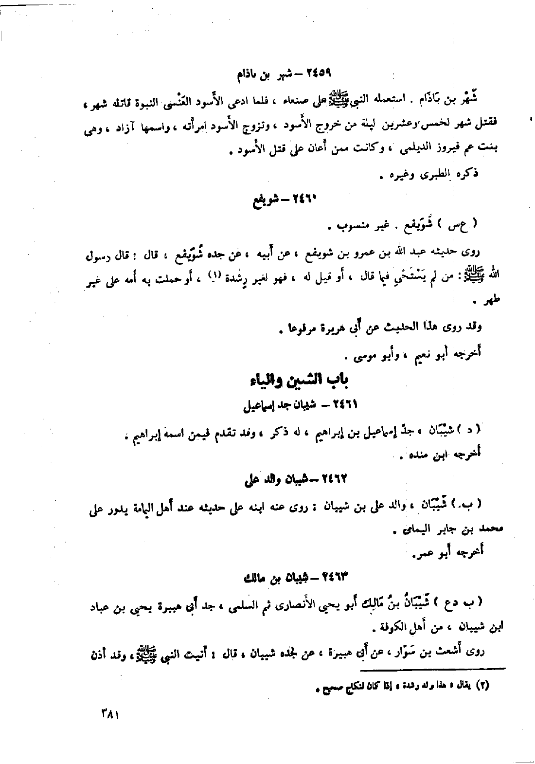 شهر بْن باذام. استعمله النَّبِيّ صَلَّى اللَّهُ عَلَيْهِ وَسَلَّمَ عَلَى صنعاء، فلما ادعى الأسود العنسي النبوة قاتله شهر، فقتل شهر لخمس وعشرين ليلة من خروج الأسود، وتزوج الأسود امرأته، واسمها آزاد، وهي بنت عم فيروز الديلمي، وكانت ممن أعان عَلَى قتل الأسود.