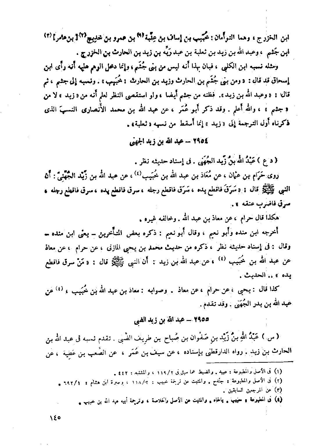 أخرجه ابن منده وَأَبُو نعيم، وقال أَبُو نعيم: ذكره بعض المتأخرين- يعني ابن منده- وقال: في إسناد حديثه نظر، ذكره من حديث مُحَمَّد بْن يحيى المازني، عَنْ حرام، عَنْ معاذ عَنْ عَبْد اللَّهِ بْن خبيب [٤] ، عَنْ عَبْد اللَّهِ بْن زيد: أن النَّبِيّ صَلَّى اللَّهُ عَلَيْهِ وَسَلَّمَ قال: «من سرق فاقطع يده» ... الحديث.