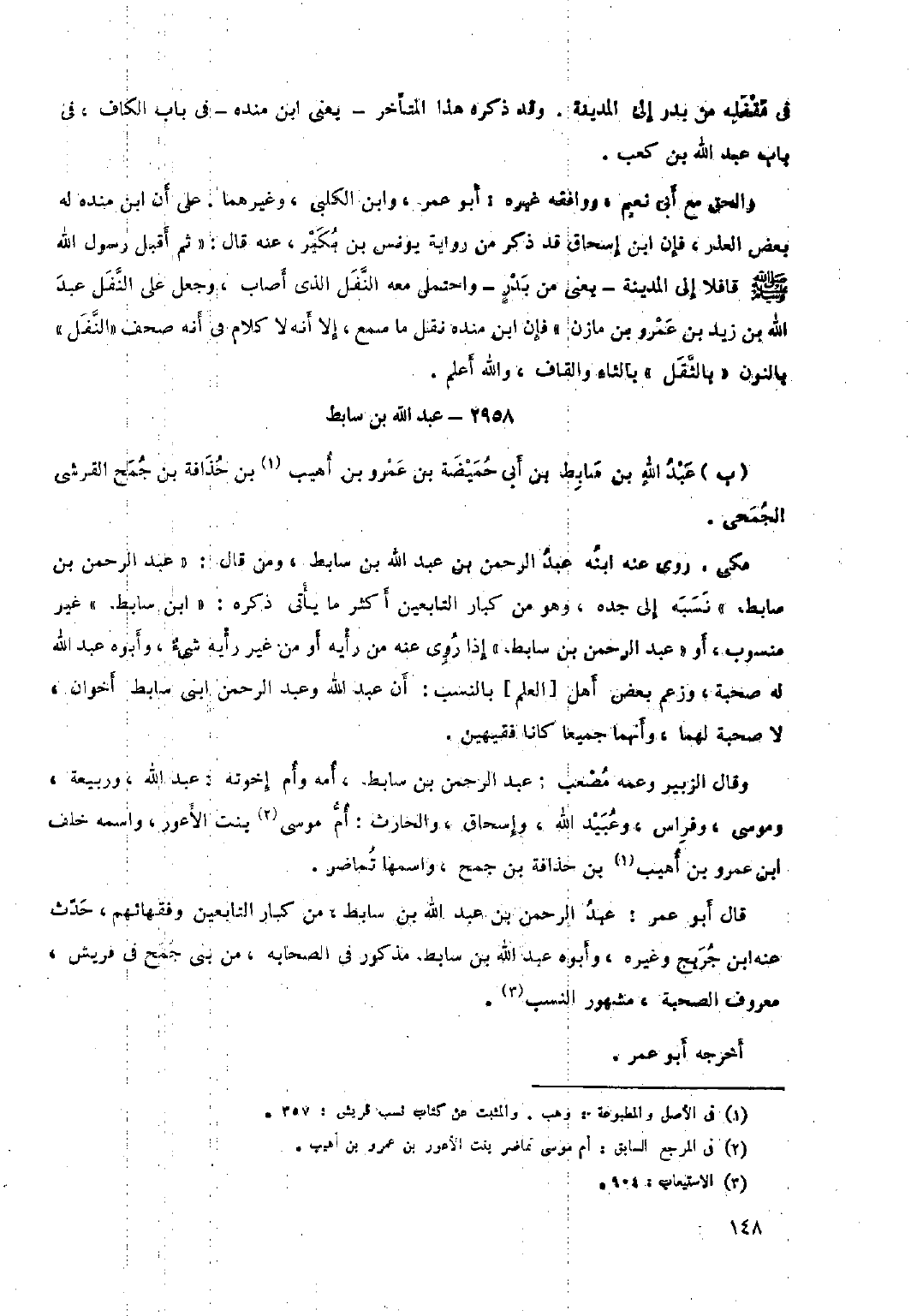 (ب) عَبْد اللَّهِ بْن سابط بْن أَبِي حميضة بْن عمرو بْن أهيب [١] بْن حذافة بْن جمح القرشي الجمحي.