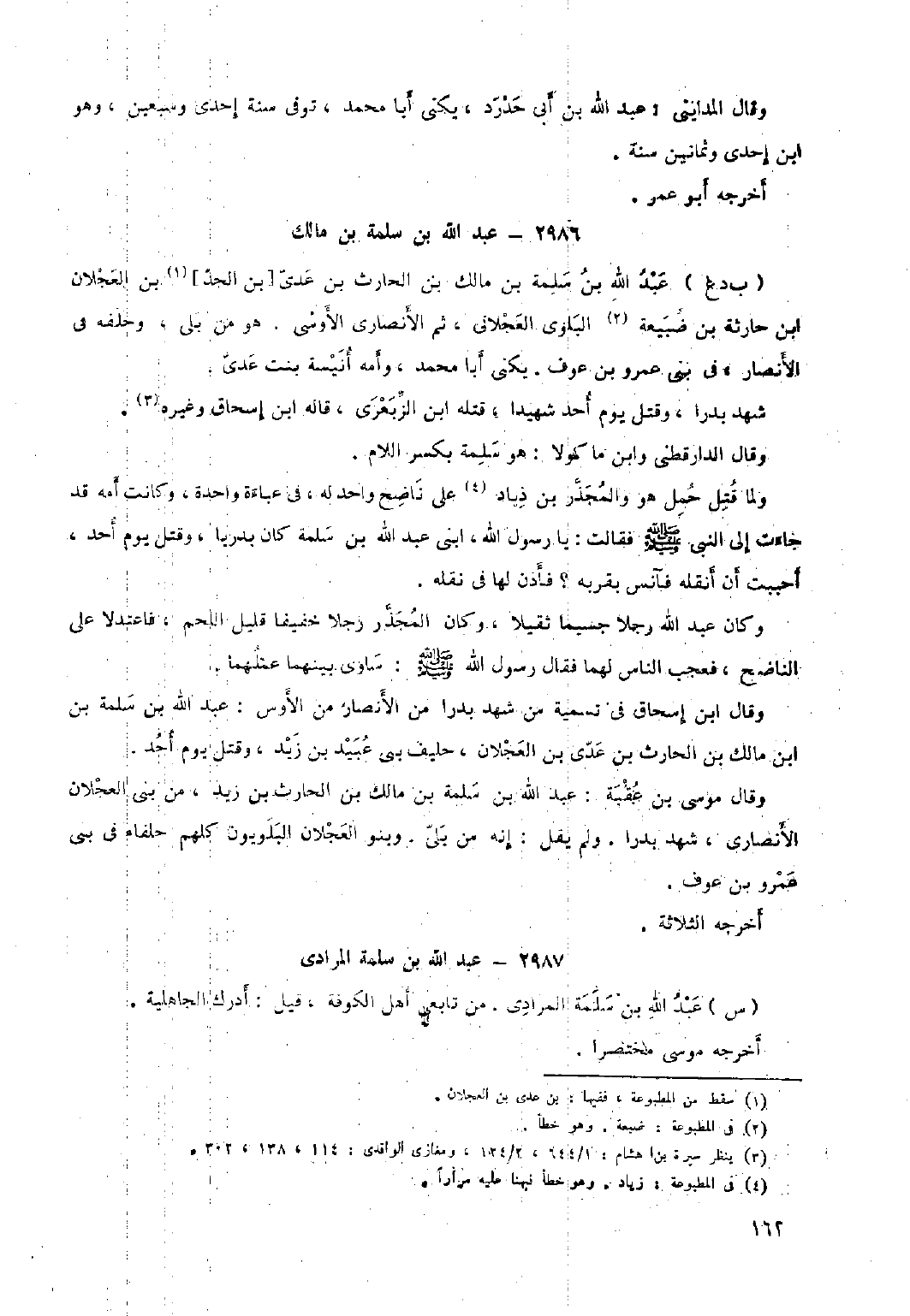 ٢٩٨٦- عبد الله بن سلمة بن مالك