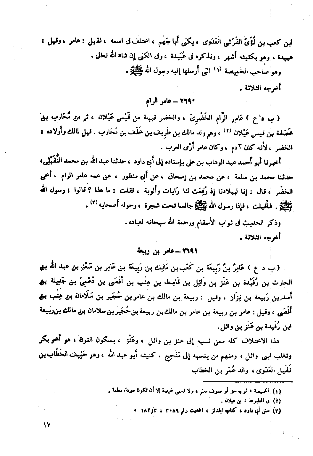 (ب د ع) عامر بن ربيعة بن كعب بن مالك بن ربيعة بْن عامر بْن سعد بْن عَبْد اللَّهِ بْن الحارث بْن رفيدة بْن عنز بْن وائل بْن قاسط بْن هنب بْن أفصى بْن دعمي بْن جديلة بْن أسد بْن ربيعة بْن نزار، وقيل: ربيعة بْن مالك بْن عامر بْن حجير بْن سلامان بْن هنب بْن أفصى، وقيل: عامر بْن رَبِيعة بْن عَامِر بْن مَالِك بْن ربيعة بْن حجير بْن سلامان بْن مالك بْن ربيعة ابن رفيدة بْن عنز بْن وائل.