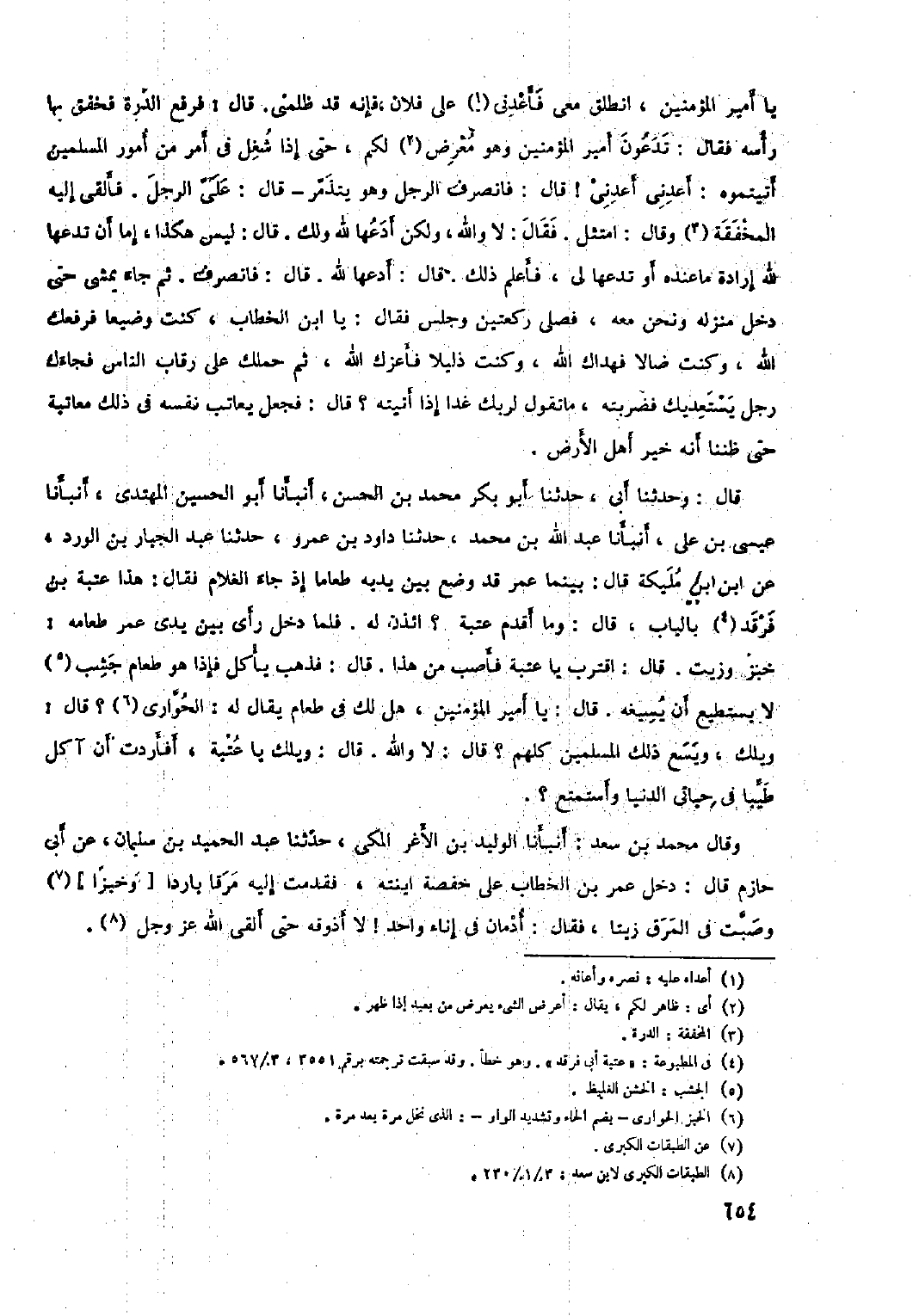 يَا أَمِيرَ الْمُؤْمِنِينَ، انْطَلِقْ مَعِي فَأَعِدْنِي [١] عَلَى فُلانٍ، فَإِنَّهُ قَدْ ظَلَمَنِي. قَالَ: فَرَفَعَ الدِّرَّةَ فَخَفَقَ بِهَا رَأْسَهُ فَقَالَ: تَدْعُوَنَّ أَمِيرَ الْمُؤْمِنِينَ وَهُوَ مُعْرِضٌ [٢] لَكُمْ، حَتَّى إِذَا شُغِلَ فِي أَمْرٍ مِنْ أُمُورِ الْمُسْلِمِينَ أَتَيْتُمُوهُ: أَعِدْنِي أَعِدْنِي! قَالَ: فَانْصَرَفَ الرَّجُلُ وَهُوَ يَتَذَمَّرُ- قَالَ: عَلَيَّ الرَّجُلُ. فَأَلْقَى إِلَيْه الْمِخْفَقَةَ [٣] وَقَالَ: امْتَثِلْ. فَقَالَ: لا وَاللَّهِ، وَلَكِنْ أَدَعُهَا للَّه وَلَكَ. قَالَ: لَيْسَ هَكَذَا، إِمَّا أَنْ تَدَعُهَا للَّه إِرَادَةَ مَا عِنْدَهُ أَوْ تَدَعُهَا لِي، فَأْعَلَمَ ذَلِكَ. قَالَ: أَدَعُهَا للَّه. قَالَ: فَانْصَرَفَ. ثُمَّ جَاءَ يَمْشِي حَتَّى دَخَلَ مَنْزِلَهُ وَنَحْنُ مَعَهُ، فَصَلَّى ركعتين وجلس فقال: يا ابن الْخَطَّابِ، كُنْتَ وَضِيعًا فَرَفَعَكَ اللَّهُ، وَكُنْتَ ضَالا فَهَدَاكَ اللَّهُ، وَكُنْتَ ذَلِيلا فَأَعَزَّكَ اللَّهُ، ثُمَّ حَمَلَكَ عَلَى رِقَابِ النَّاسِ فَجَاءَكَ رَجُلٌ يَسْتَعْدِيكَ فَضَرَبْتَهُ، مَا تَقُولُ لِرَبِّكَ غَدًا إِذَا أَتَيْتَهُ؟ قَالَ: فَجَعَلَ يُعَاتِبُ نَفْسَهُ فِي ذَلِكَ مُعَاتَبَةً حَتَّى ظَنَنَّا أَنَّهُ خَيْرُ أَهْلِ الأَرْضِ.