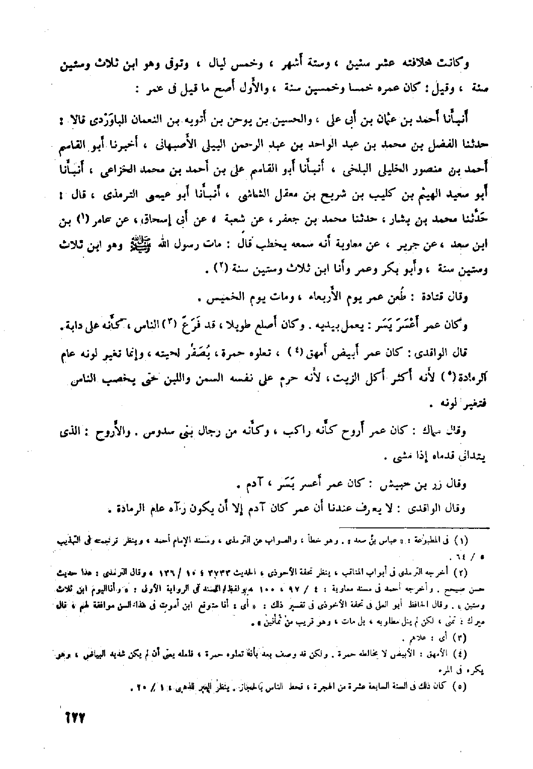 وقَالَ الواقدي: لا يعرف عندنا أن عُمَر كَانَ آدم إلا أن يكون رآه عام الرمادة.