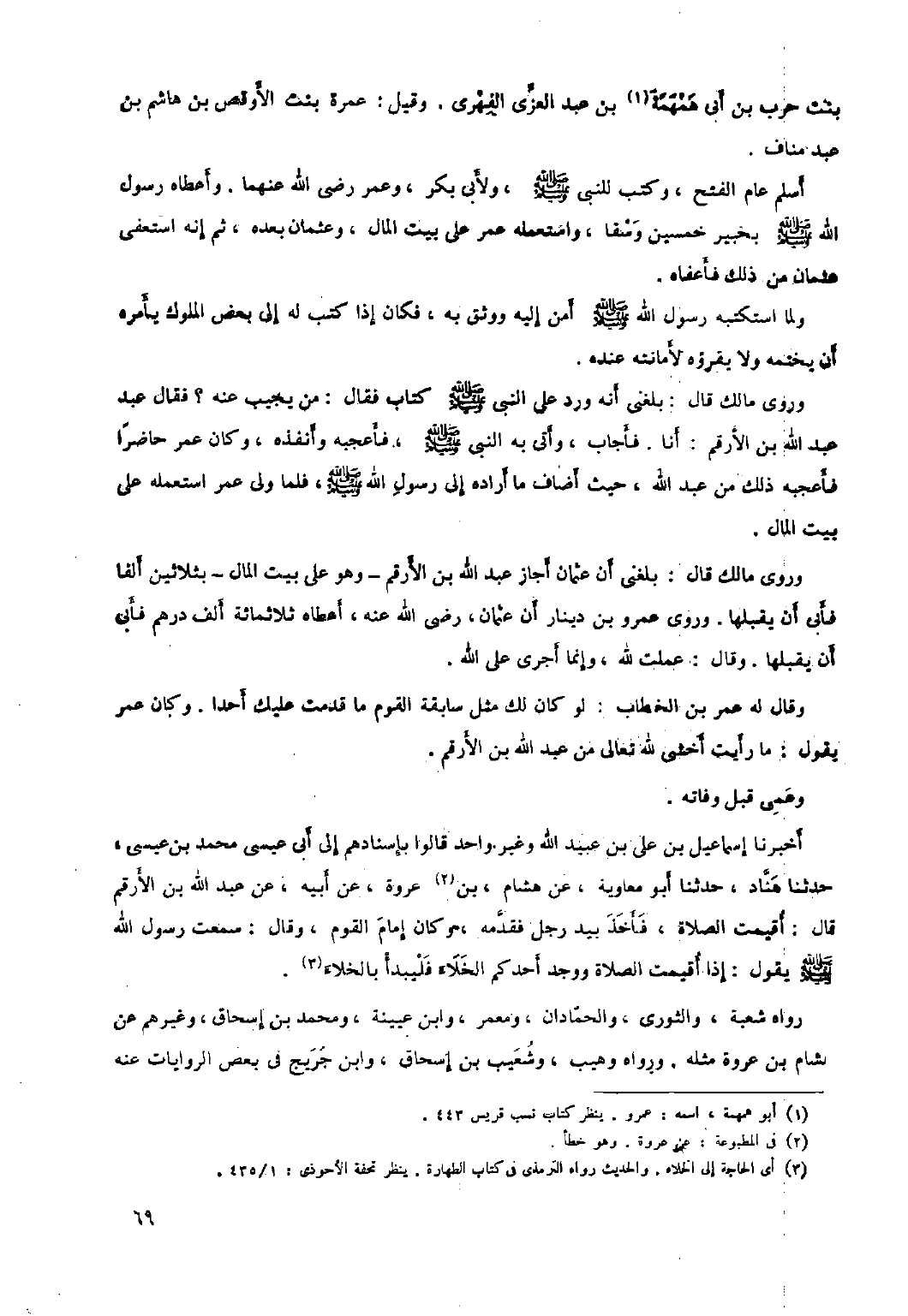 أَخْبَرَنَا إِسْمَاعِيل بْنُ عَلِيِّ بْنِ عُبَيْدِ اللَّهِ وغير واحد قالوا بإسنادهم إلى أبي عيسى محمد بن عيسى، حدثنا هناد، حدثنا أَبُو معاوية، عَنْ هشام، بْن [٢] عروة، عن أبيه، عن عبد الله بن الأرقم قال: أقيمت الصلاة، فأخذ بيد رجل فقدمه، وكان إمام القوم، وقال: سمعت رَسُول الله صلى الله عليه وسلم يقول: إذا أقيمت الصلاة ووجد أحدكم الخلاء فليبدأ بالخلاء [٣] . رواه شعبة، والثوري، والحمادان، ومعمر، وابن عيينة، ومحمد بْن إِسْحَاق، وغيرهم عَنْ هشام بْن عروة مثله. ورواه وهيب، وشعيب بْن إِسْحَاق، وابن جريج في بعض الروايات عنه