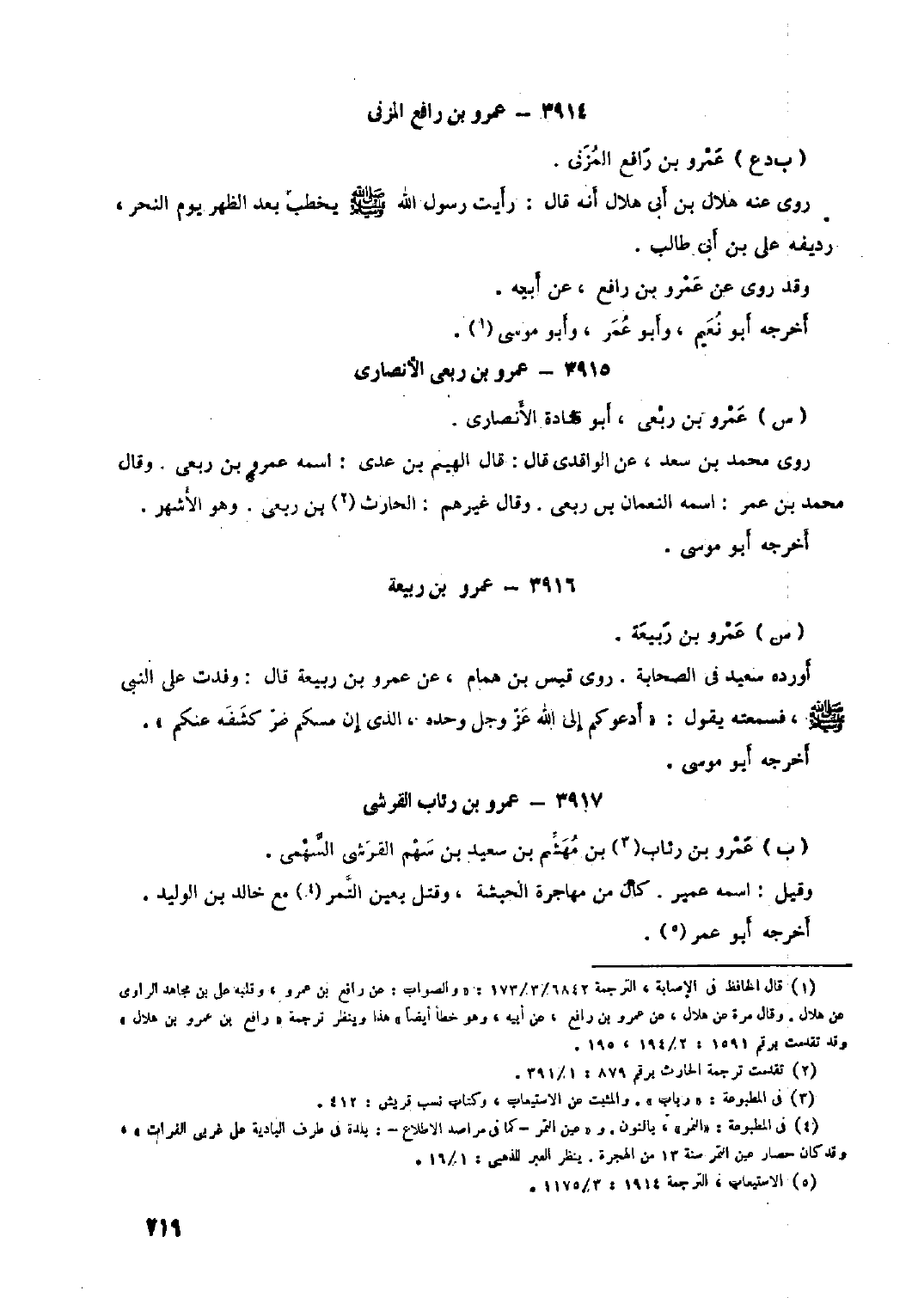 ٣٩١٥- عمرو بن ربعي الأنصاري