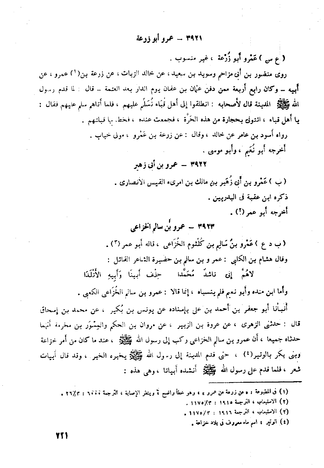 [١] في المطبوعة: «عن زرعة عن عمرو» ، وهو خطأ واضح، وينظر الإصابة، الترجمة ٦٠٠٠: ٣/ ٢٦.