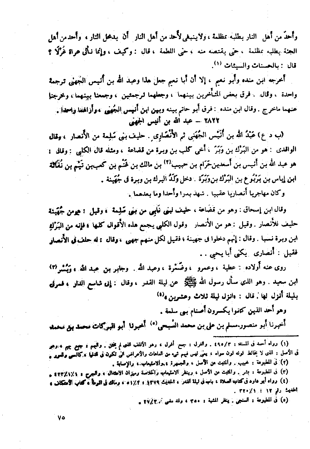 قال: بالحسنات والسيئات [١] . أخرجه ابن منده وَأَبُو نعيم، إلا أن أبا نعيم جعل هذا وعبد اللَّه بْن أنيس الجهني ترجمة واحدة، وقال: فرق بعض المتأخرين بينهما، وجعلهما ترجمتين، وجمعنا بينهما، وخرجنا عنهما ما خرج. وقال ابن منده: فرق أَبُو حاتم بينه وبين ابن أنيس الجهنيّ، وأراهما واحدا.