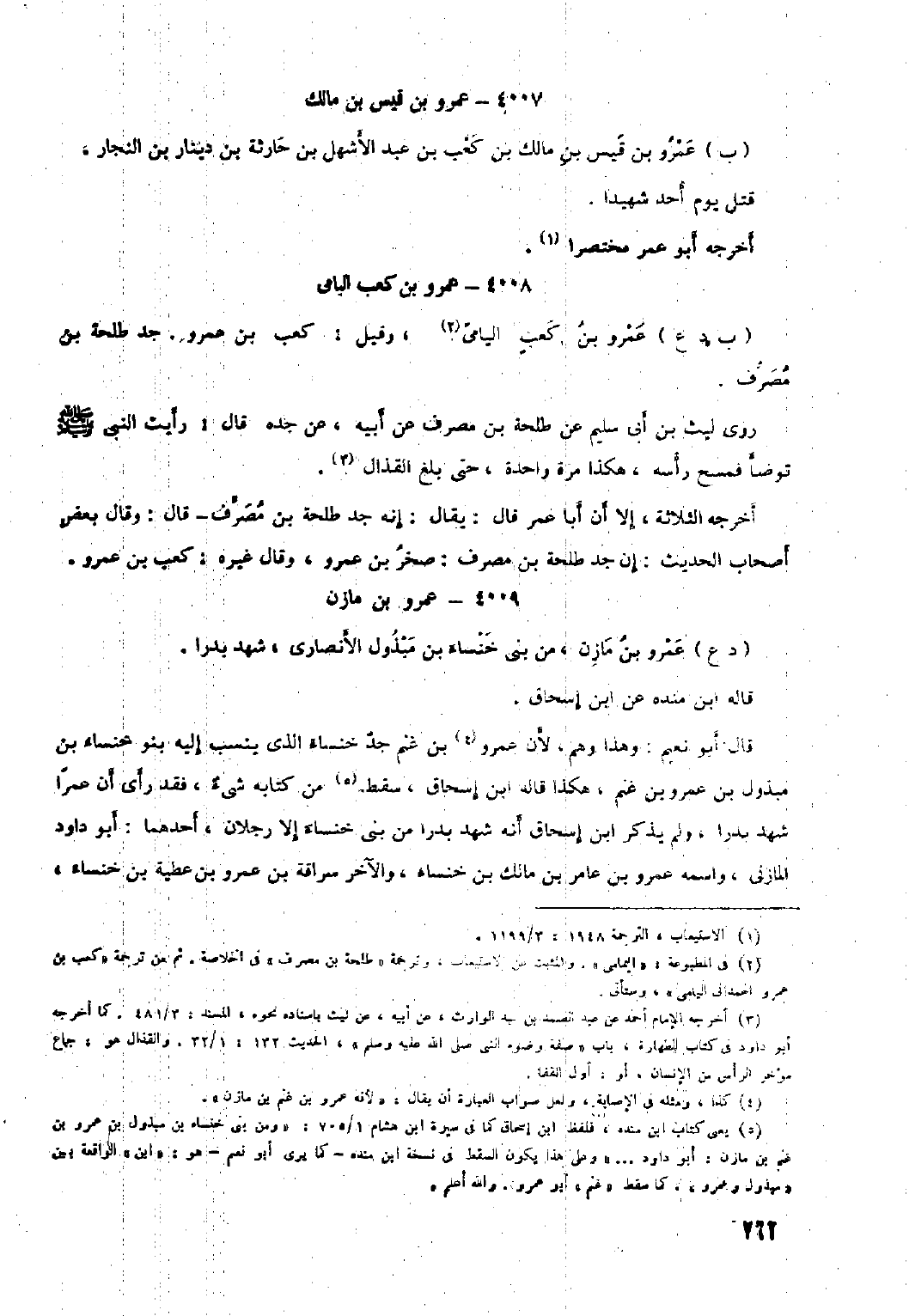 [٢] في المطبوعة: «اليمامي» . والمثبت عن الاستيعاب، وترجمة «طلحة بن مصرف» في الخلاصة ثم من ترجمة «كعب بن عمرو الهمدانيّ اليامى» ، وستأتي.