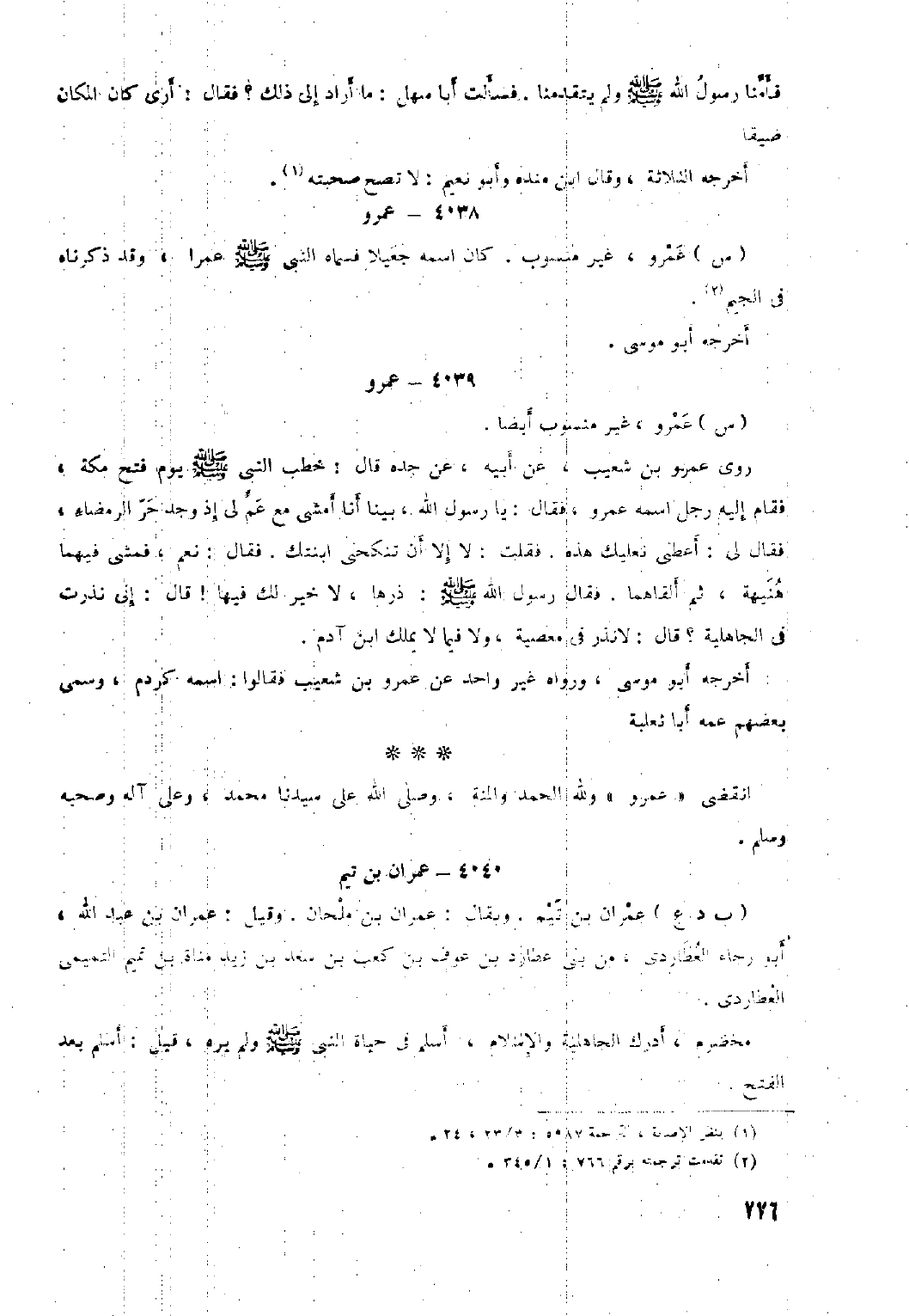 أَخْرَجَهُ أَبُو موسى، ورواه غير واحد عَنْ عَمْرو بْن شُعَيْب فقالوا: اسمه كردم، وسمى بعضهم عمه أبا ثعلبة انقضى «عَمْرو» وللَّه الحمد والمنة، وصلى اللَّه عَلَى سيدنا مُحَمَّد، وعلى آله وصحبه وسلم.