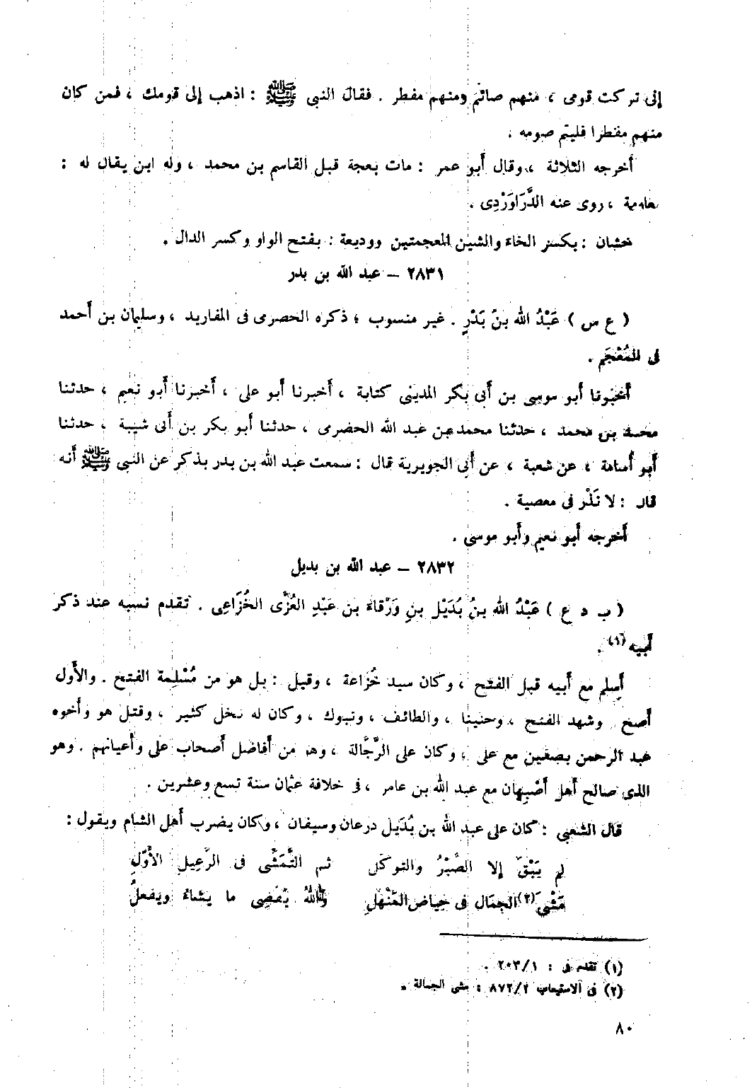 (ب د ع) عَبْد اللَّهِ بْن بديل بْن ورقاء بْن عبد العزى الخزاعي. تقدم نسبه عند ذكر أبيه [١] .