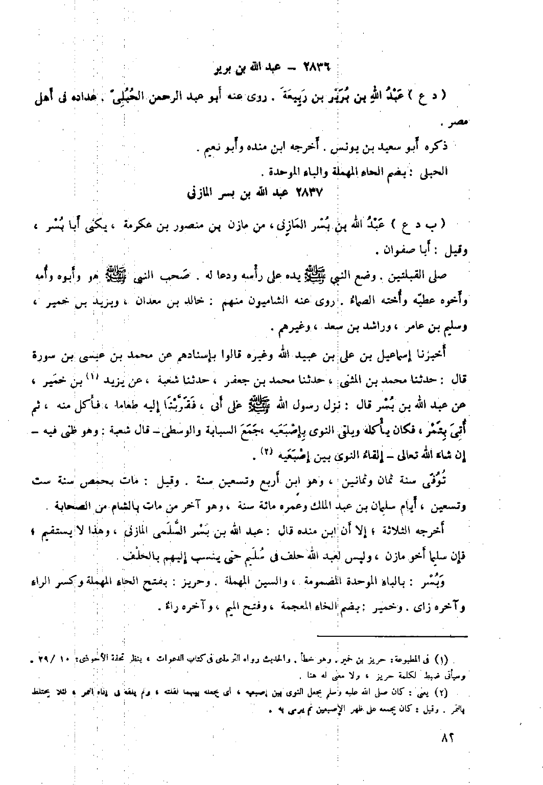 ٢٨٣٧- عبد الله بن بسر المازني