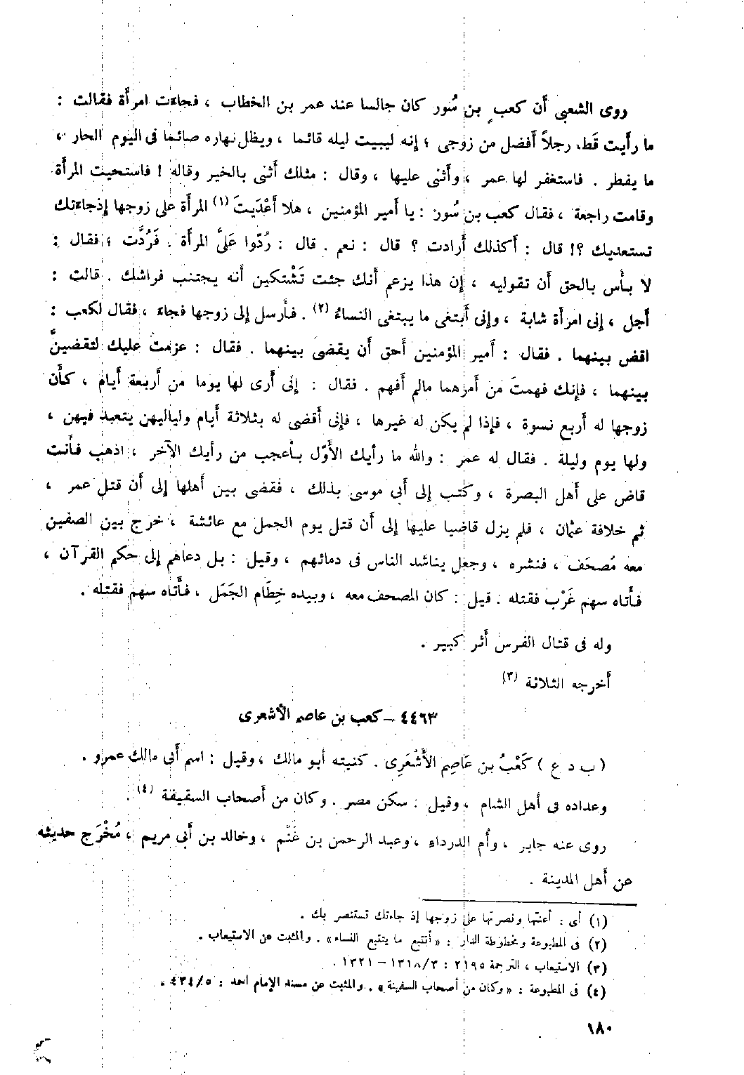 روى الشَّعْبِيّ أن كعب بْن سور كَانَ جالسًا عند عُمَر بْن الخطاب، فجاءت امْرَأَة فقالت: