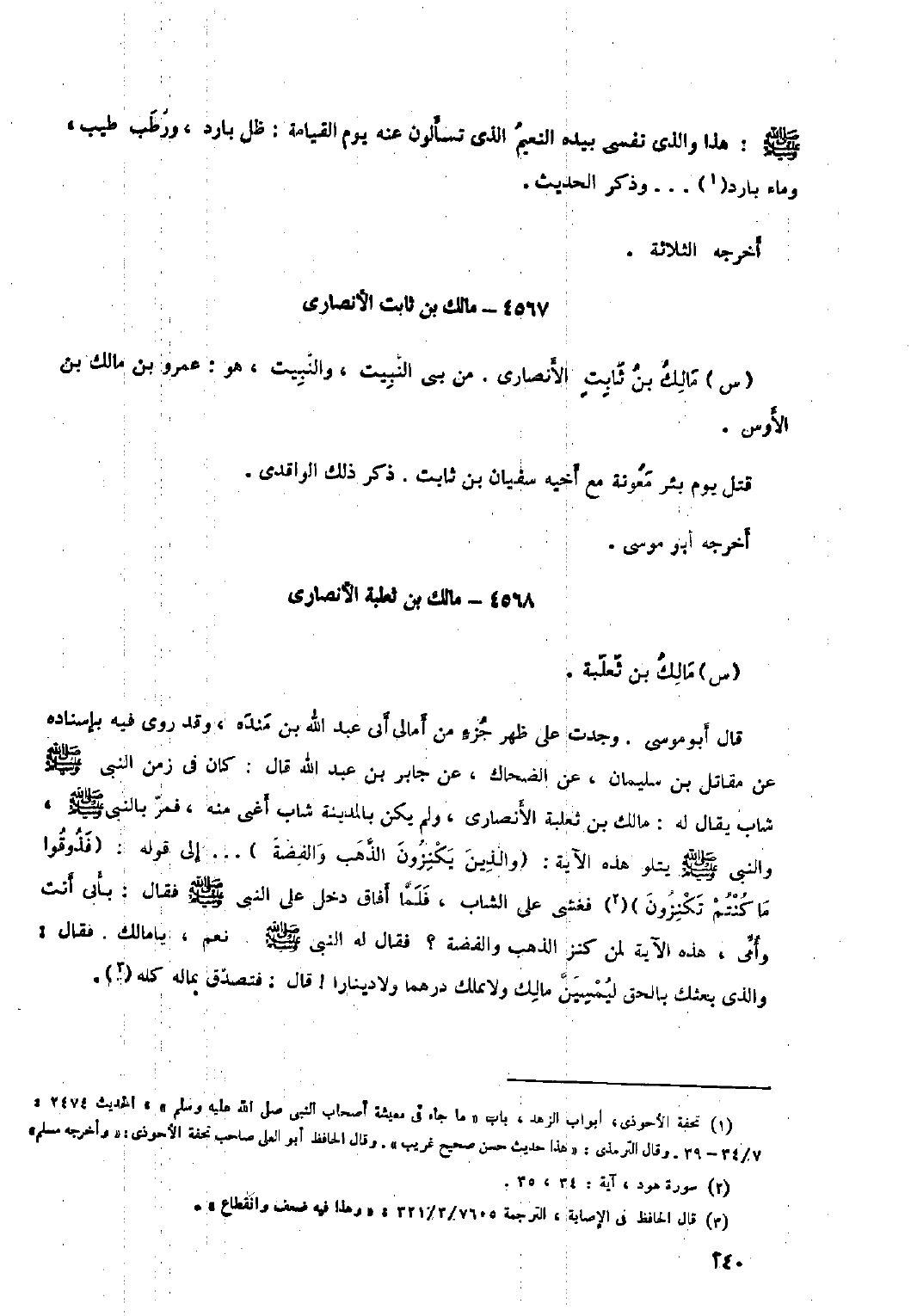 ٤٥٦٧- مالك بن ثابت الأنصاري